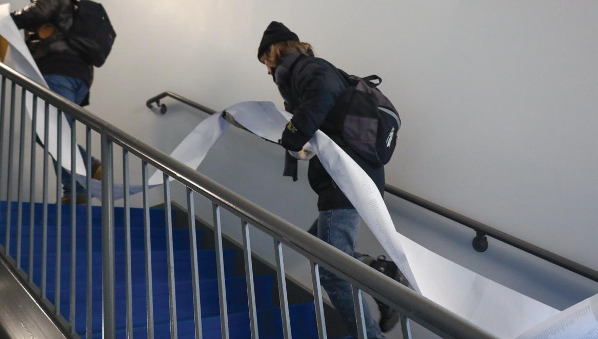A large portion of protesters attempted to enter the Student Center to deliver the petition during the protest but were threatened with arrest by campus security. Only organizers were allowed to enter.