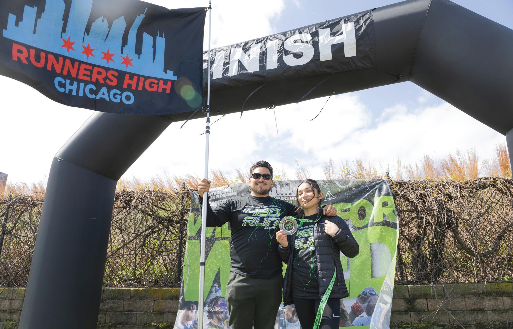 Runner’s High Run Club founders Carlos Ramos and Anakaren Ramirez stand outside of Village Dispensary Bucktown on Saturday, April 18, 2026. The club was founded in June 2022.