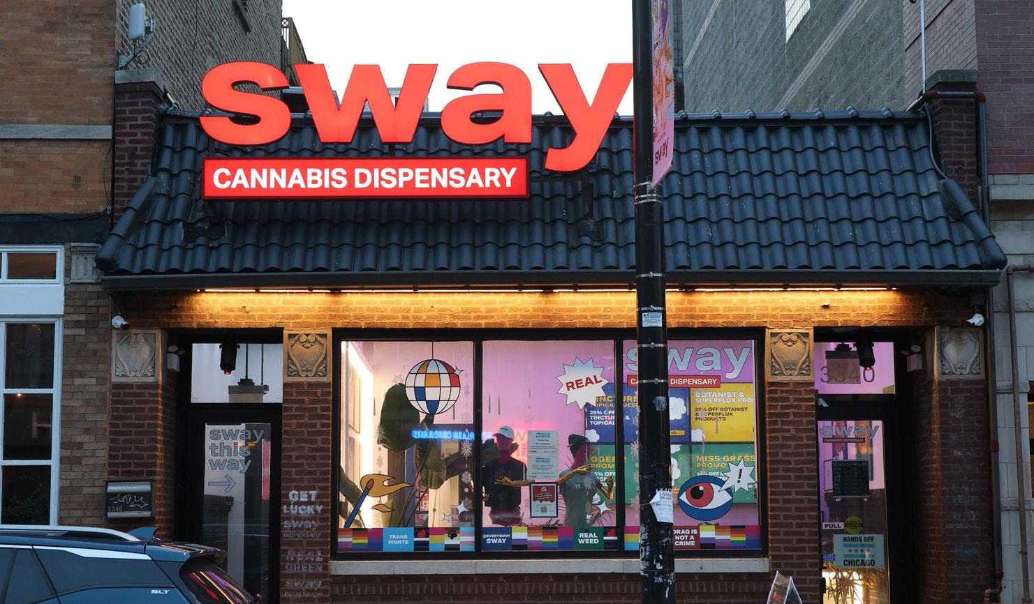 La fachada del dispensario SWAY, ubicado en 3340 N. Halsted, el 15 de abril de 2026. El dispensario abrió en 2024 después de la aprobación de la Ley de Regulación y Fiscalización del Cannabis.