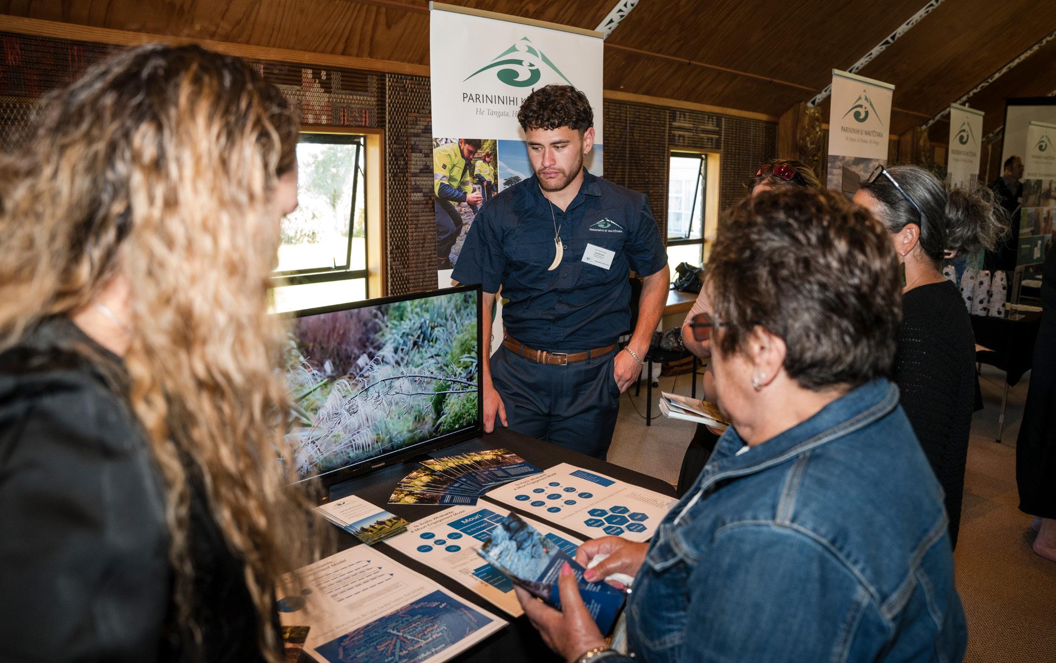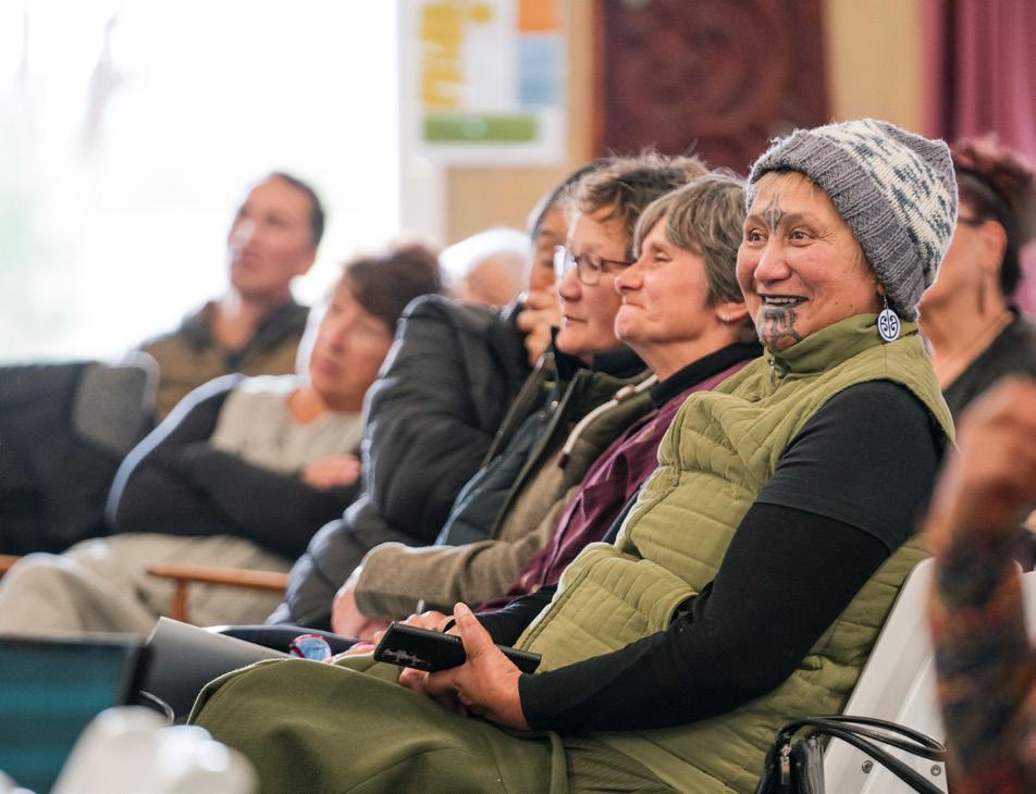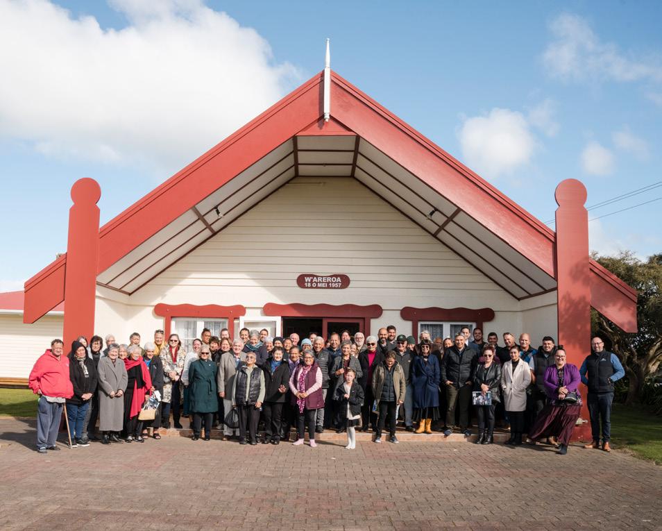 Kei raro: Rau Titikura / Shareholder whānau kei mua i W'areroa i te hui ā-Haurua Tau o PKW, Taiporohēnui Marae, Haratua 2024.