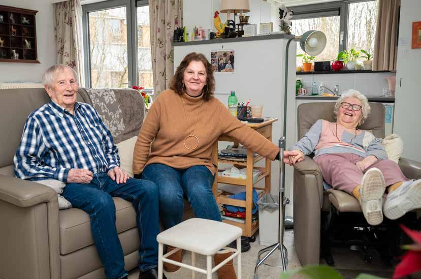 bewoners vaak ‘mijn mensen’. En zo voelt het ook aan. Ik ben zeer bereikbaar. Zowel in persoon als via de telefoon. Samen met mijn man woon ik op de bovenste verdieping van een van de gebouwen. Het is natuurlijk niet de bedoeling dat de bewoners aan onze deur komen kloppen. Daar zijn afspraken over. Maar er zijn genoeg kansen om me hier tegen het lijf te lopen. We houden minimaal vier keer per jaar een gebruikersraad waar alle bewoners en hun mantelzorgers/wettelijke vertegenwoordigers hun grieven kunnen uiten en ideeën naar voren kunnen schuiven om onze werking