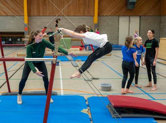 Vanaf het eerste leerjaar gaat de focus vol naar turnen. ‘De jongens en meisjes zijn onderverdeeld in twee aparte afdelingen. De meisjes kunnen hier tot het 6e middelbaar terecht, voor de jongens is dat momenteel tot 12 jaar. We vinden geen trainer voor de oudere jongens’, zegt Silke. ‘Ze krijgen één keer per week 75 minuten les. Competitief turnen kan bij ons zeker en vast. Dat zijn dan twee trainingen per week, die bovendien langer duren. En er komen selecties aan te pas. Vorig jaar hadden we een mooie wedstrijdgroep van 14 meisjes. Ze hebben mooie resultaten behaald.’