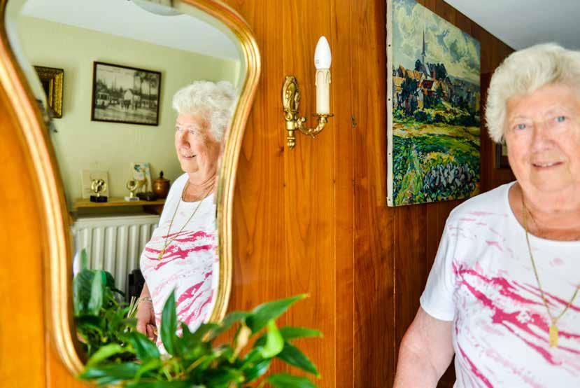 druiven bij Dewit in Tervuren. Vier keer vijftien trossen, want anders kan ik het allemaal niet dragen.’ En tijdens de zondagse mis is Anny ook nog altijd van de partij. Die vindt al lang niet meer plaats in het oude kerkje van Dumon, waar in de jaren zestig zo veel volk buiten moest staan dat het werd ver vangen door de huidige Onze-Lie ve-Vrouw-van-Stokkelkerk. Vandaag volgen er slechts een twintigtal gelovigen de mis. ‘Tegen pastoor Johan Dobbelaere, die ondertussen ook al vijf jaar weg is, heb ik destijds nog gezegd dat hij zijn boetiekske zou kunnen toedoen als wij niet meer komen (lacht). Corona heeft dat allemaal nog versneld. Veel mensen kijken nu naar de misviering op tv.’ Het wijkfeest van de parochie afgelopen september was het laatste dat Anny mee organiseerde. ‘De medewerkers worden te oud en voor mij is het te zwaar geworden.’