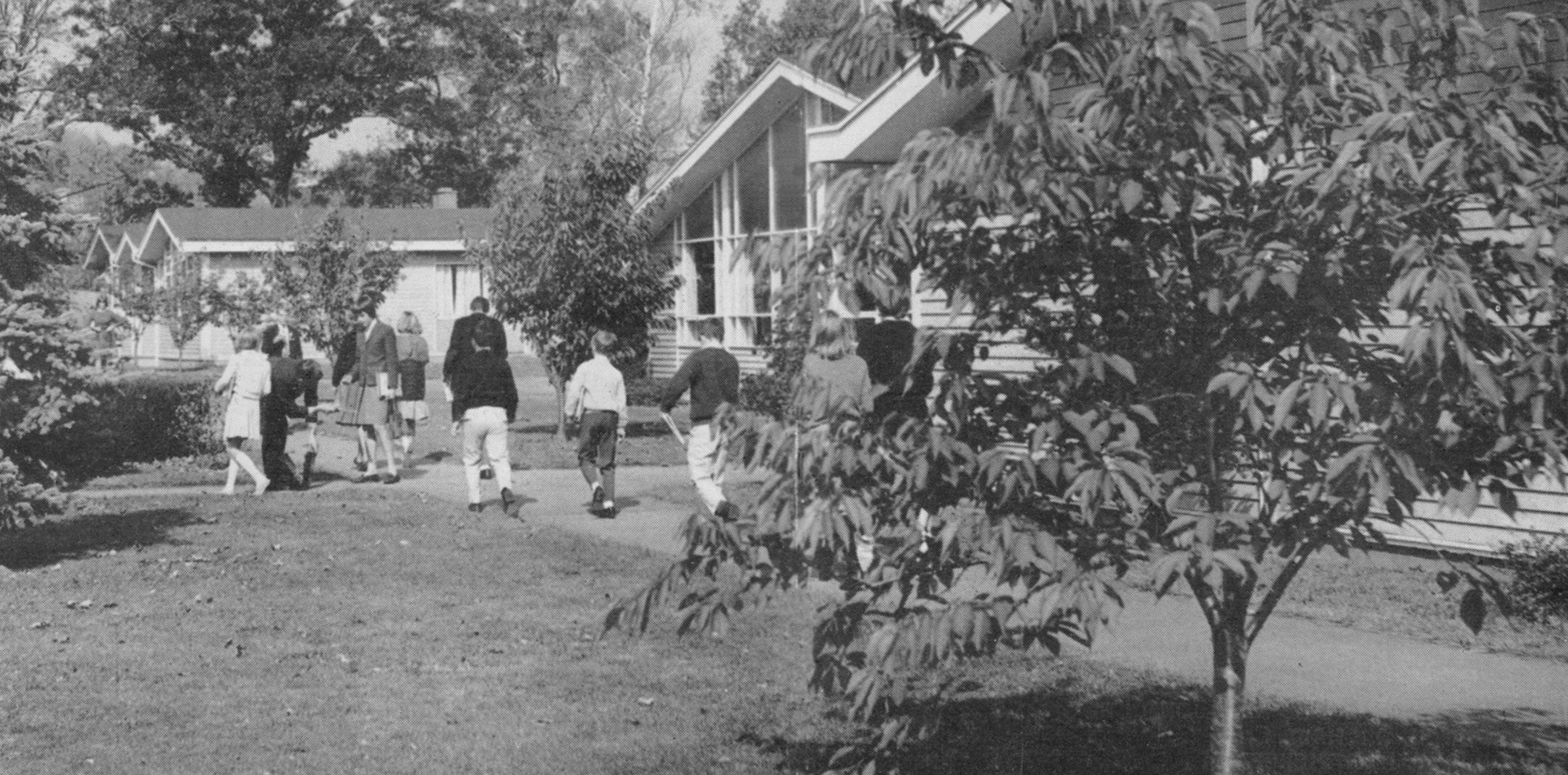 Upper grades move to the new campus (using temporary structures for classrooms from the 1920s through the 1950s) on Burditt Avenue. Lower grades remain at Old Derby until 1966.