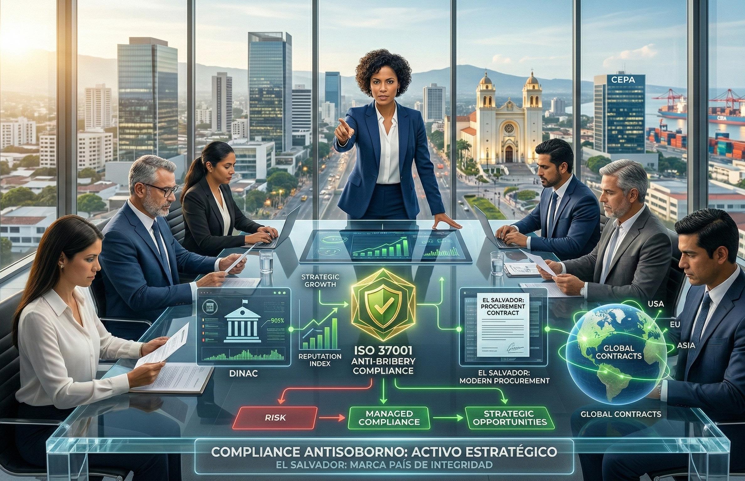 El Salvador ha incorporado la norma antisoborno en su regulación sobre compras estatales. El Artículo 16 de la Ley de Compras Públicas exige que las instituciones del Estado obtengan y mantengan la certificación antisoborno vigente, de conformidad con estándares internacionales de gestión. La inminencia de este mandato, cuyo cumplimiento será obligatorio a partir de marzo de 2026, ha impulsado una transformación en el sector público. La adopción de ISO 37001 por parte del Estado transmite a los inversores la certeza de que las reglas del juego son transparentes y equitativas. En la práctica, la competencia en licitaciones deja de basarse exclusivamente en precios y pasa a valorarse la solvencia técnica y ética de los oferentes.