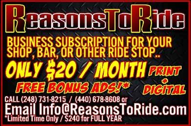 If you have a message that you’d like to share with riders across Ohio and the Midwest, let us know.• Reasons To Ride welcomes the opportunity to work with established motorcycle ministries. Feel free to share upcoming events with us as well, by emailing information to Events@ReasonsToRide.com