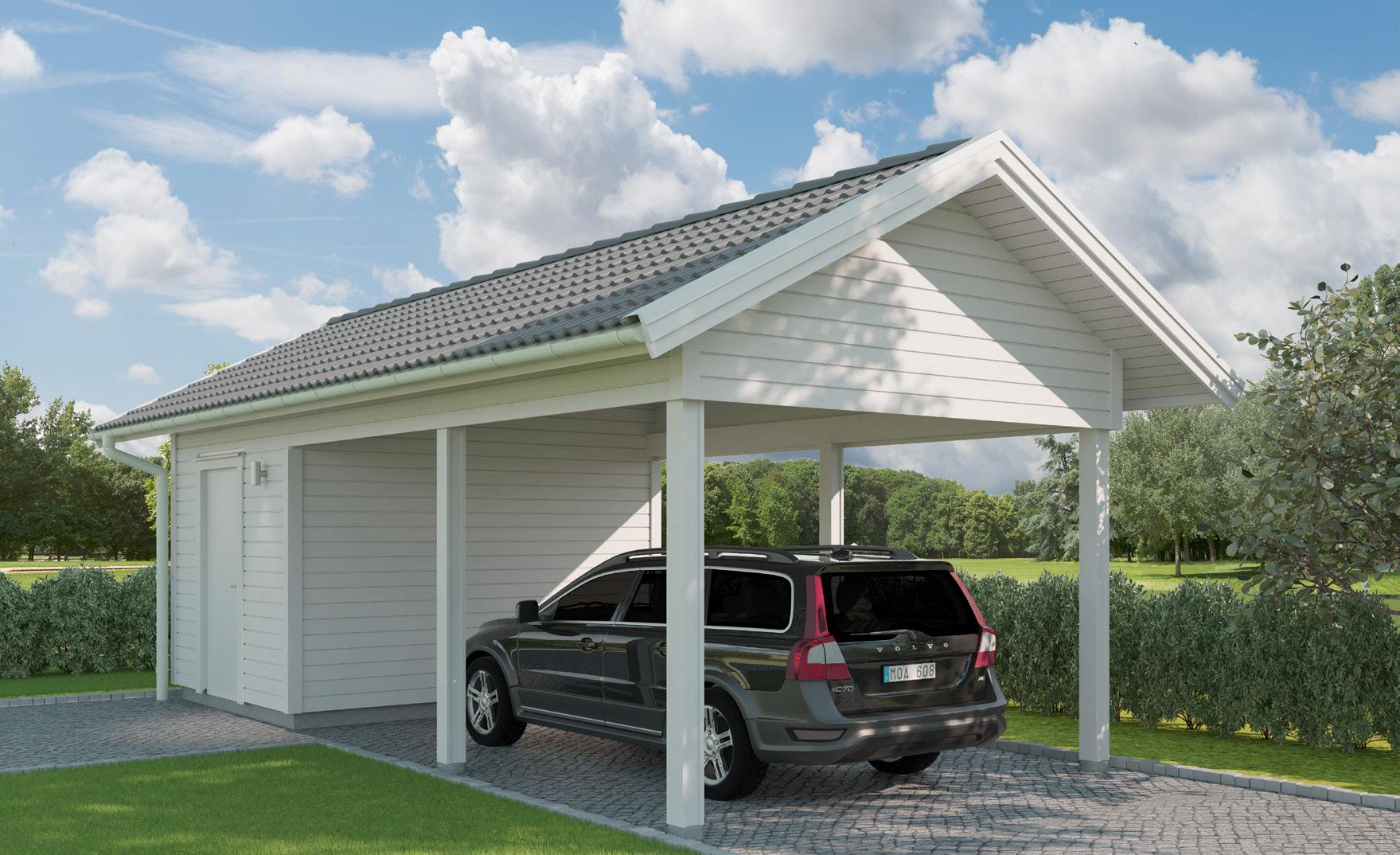 När du bygger ett skräddarsytt hus från Varbergshus har du möjlighet att få hjälp att bygga garage eller carport. Alla våra garage och carportar byggs enligt samma princip som våra skräddarsydda villor.