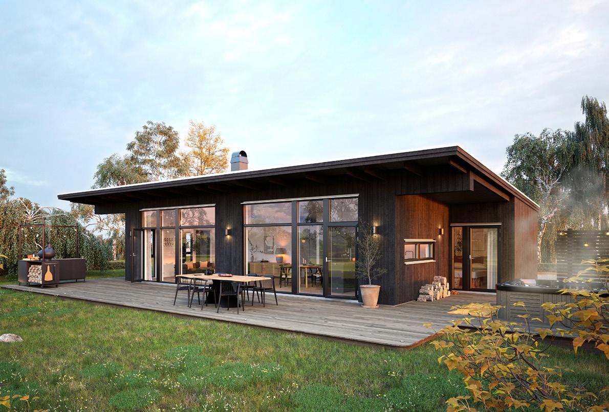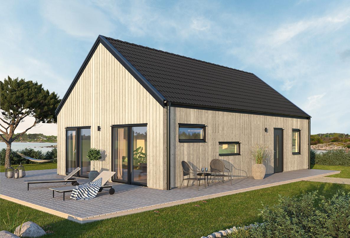 Huset erbjuder en perfekt kombination av form och funktion. Det är stora sociala ytor i kök och vardagsrum och det är plats för tre sovrum samt ett badrum och en WC.Fritidshuset har ett modernt uttryck där även taket går ut en del över uteplatsen vilket skapar en härlig känsla och en förlängning av vardagsrum och kök.