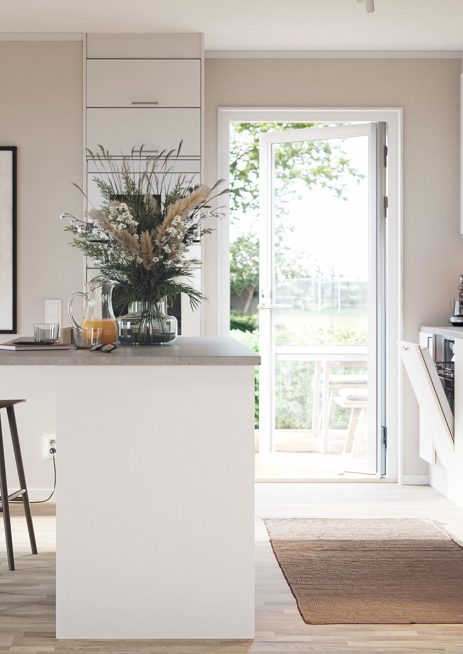 Gör huset ännu mer till ditt genom att välja upptill 3 flexval. T.ex. kan du få en vägghängd WC, ett större fönster i sovrummet eller varför inte full tillgång till Marbodal sortiment av luckor och bänkskivor?