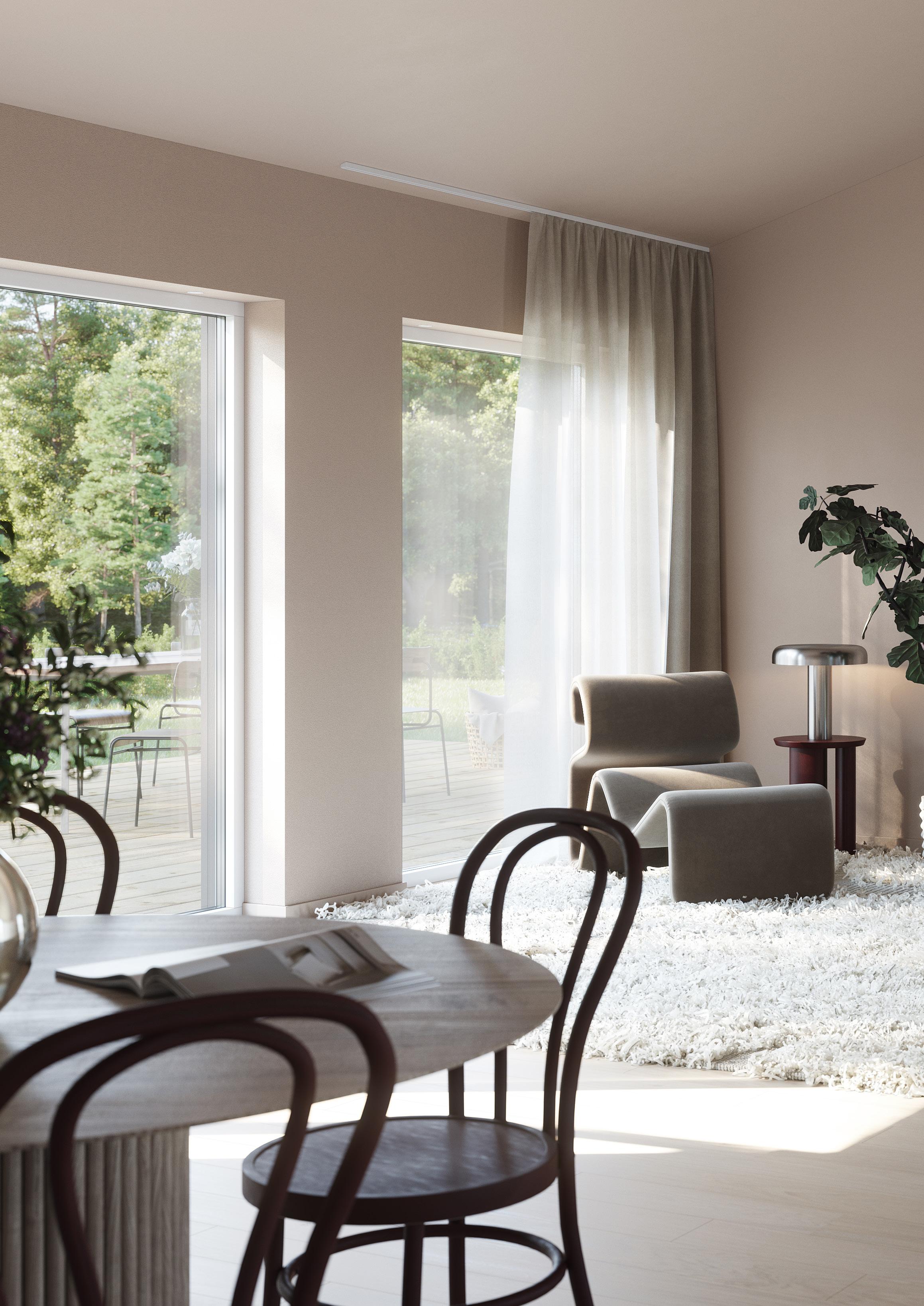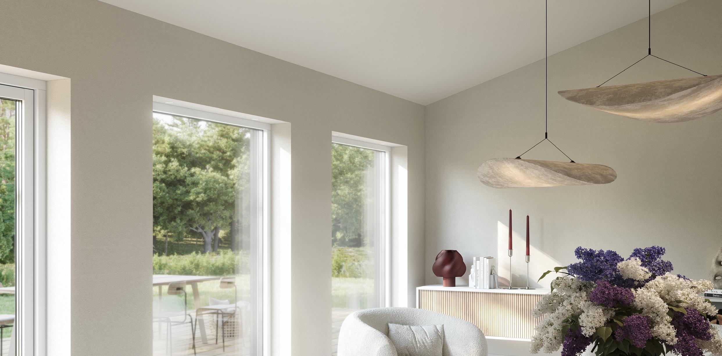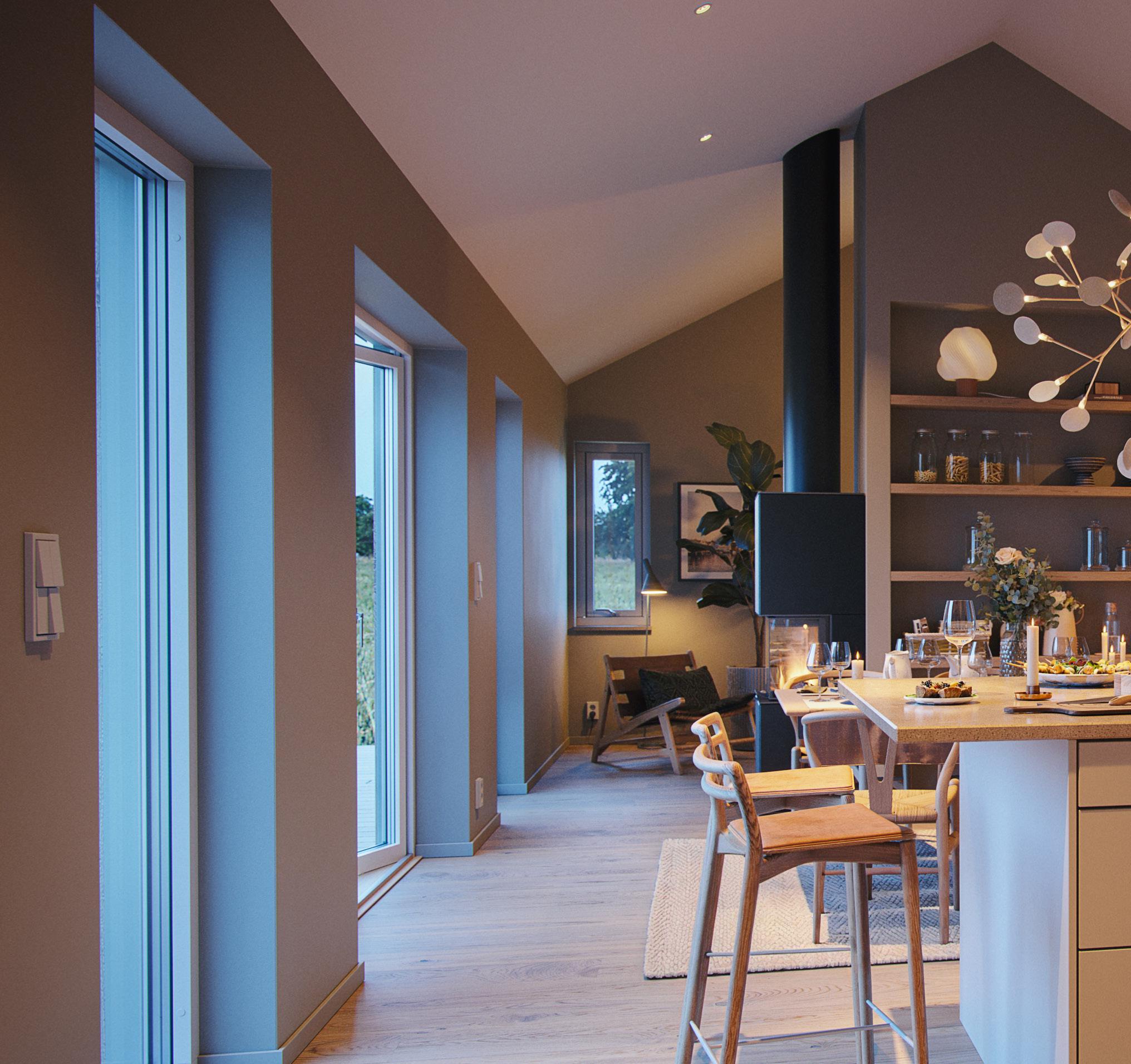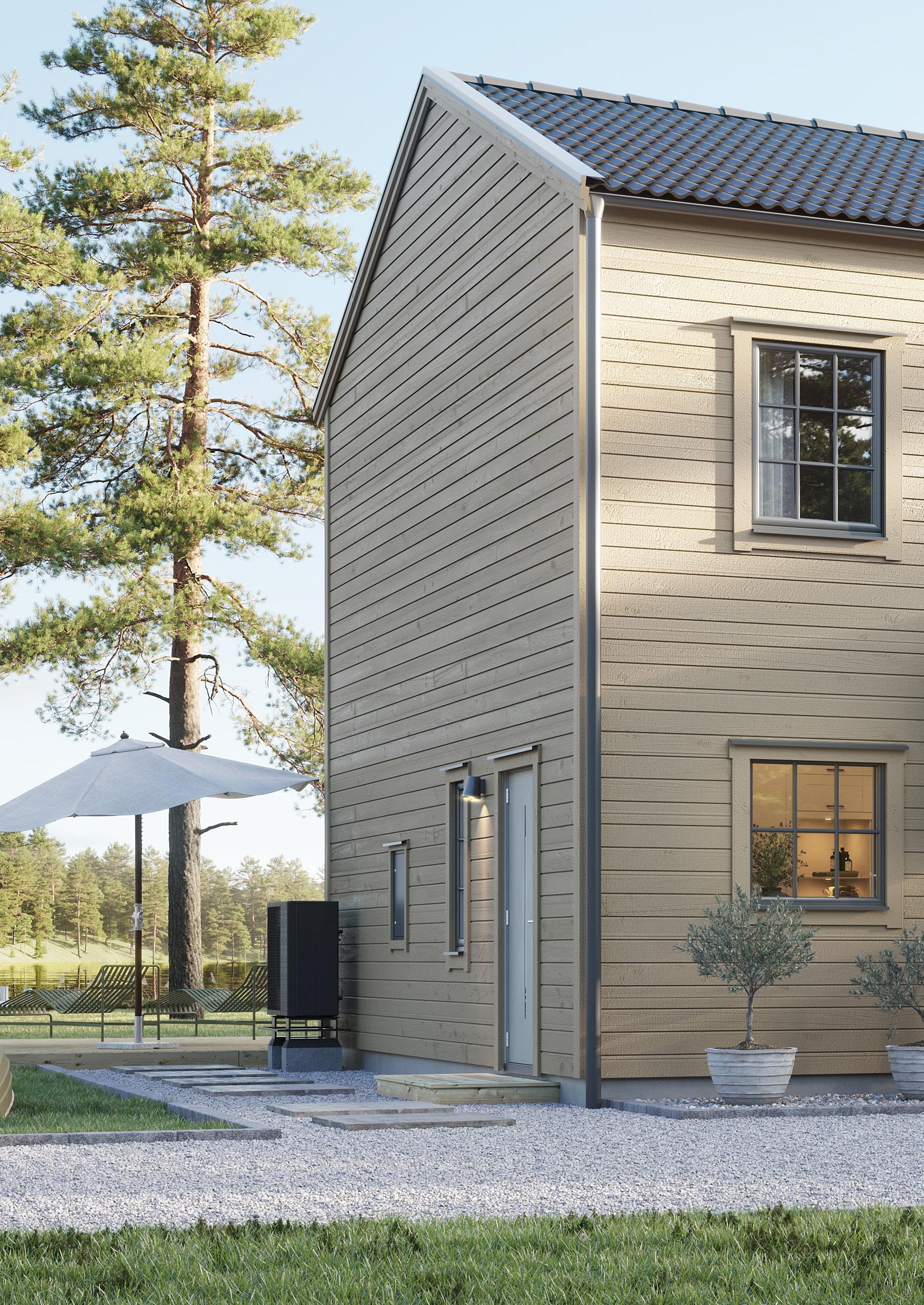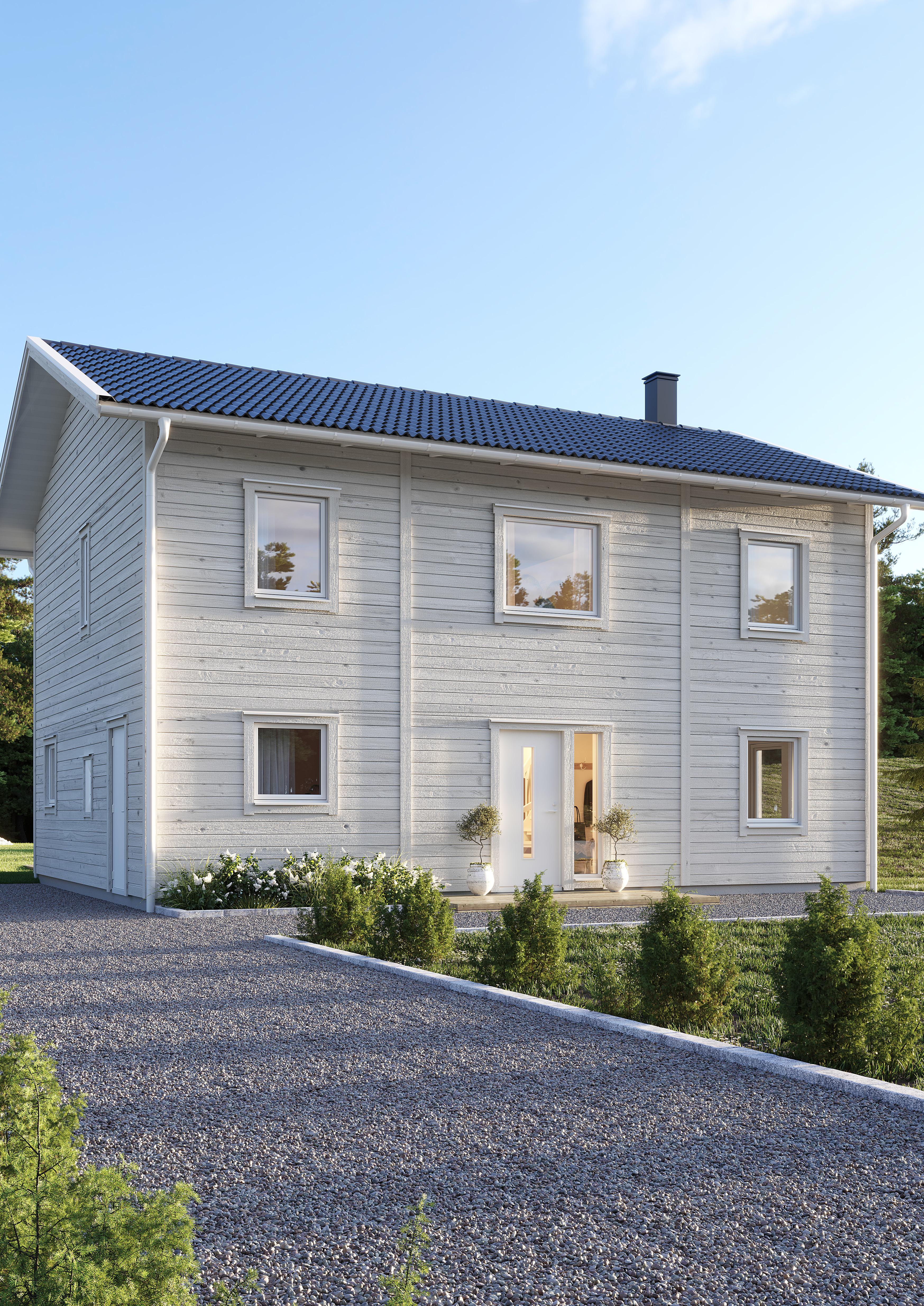 • Isolering i tre skikt ger en mycket god energiprestanda. Väggkonstruktionen dämpar ljud effektivt och ger ett tyst hus.