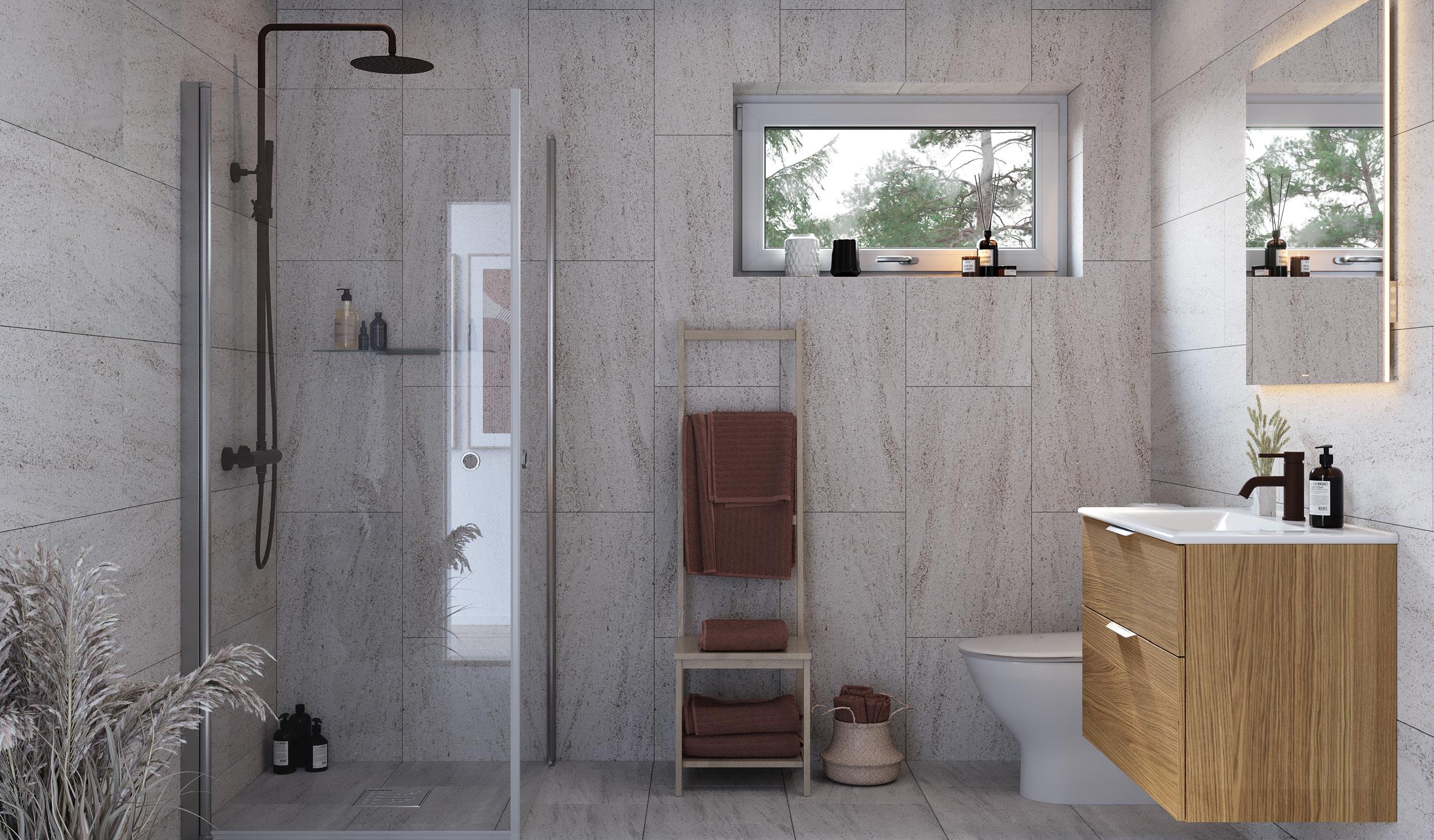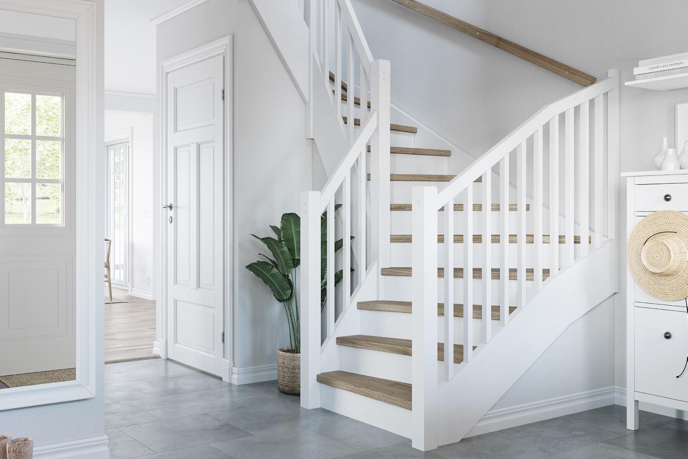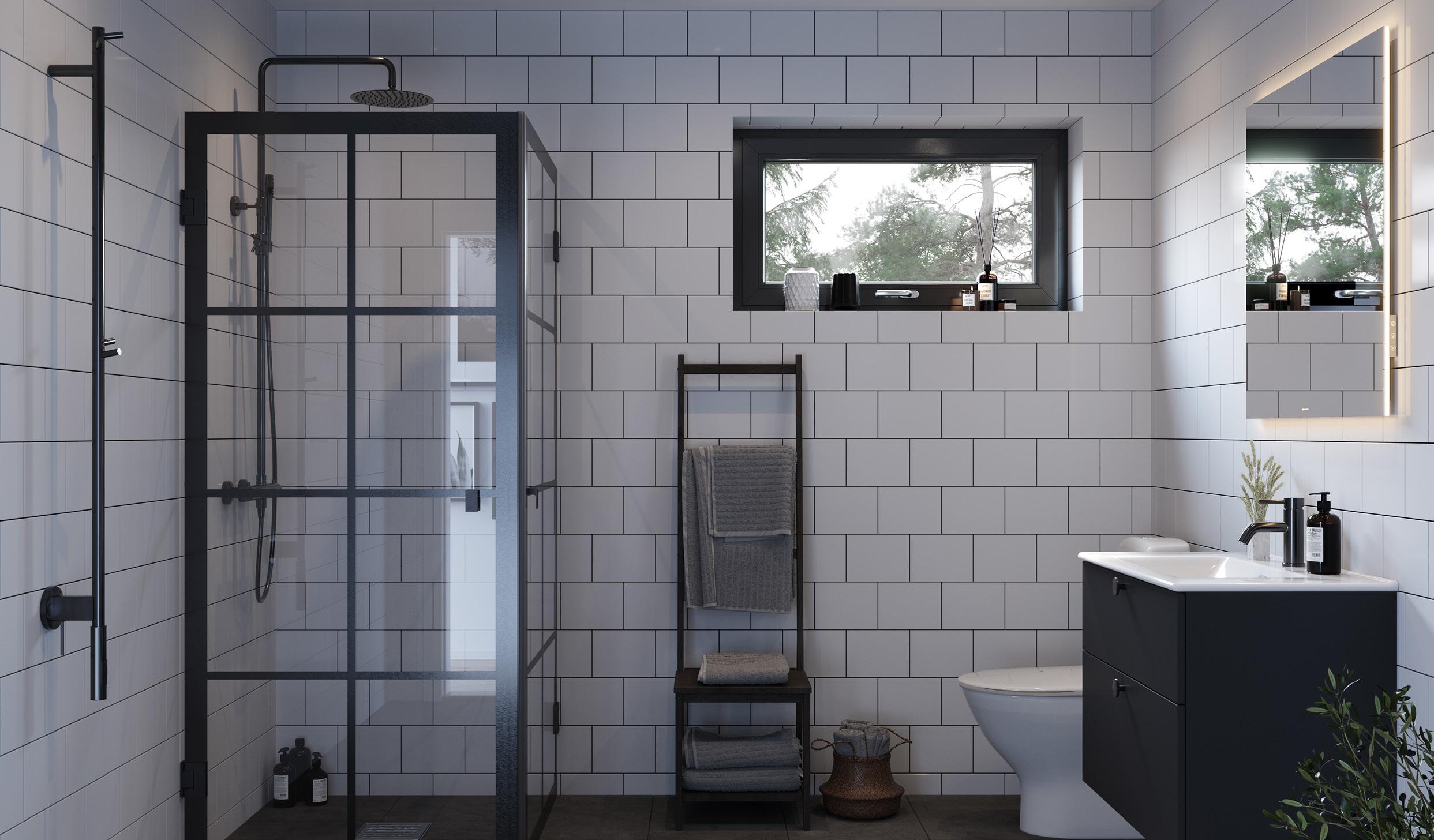 Helkaklat wc/dusch och badrum i alla våra hus är ett exempel på generös grundstandard. Annat exempel är att alla våra hus levereras med golvvärme i plattan, massiva innerdörrar och för de hus som har trappa är vitlaserad furu en självklar grundstandard för oss.