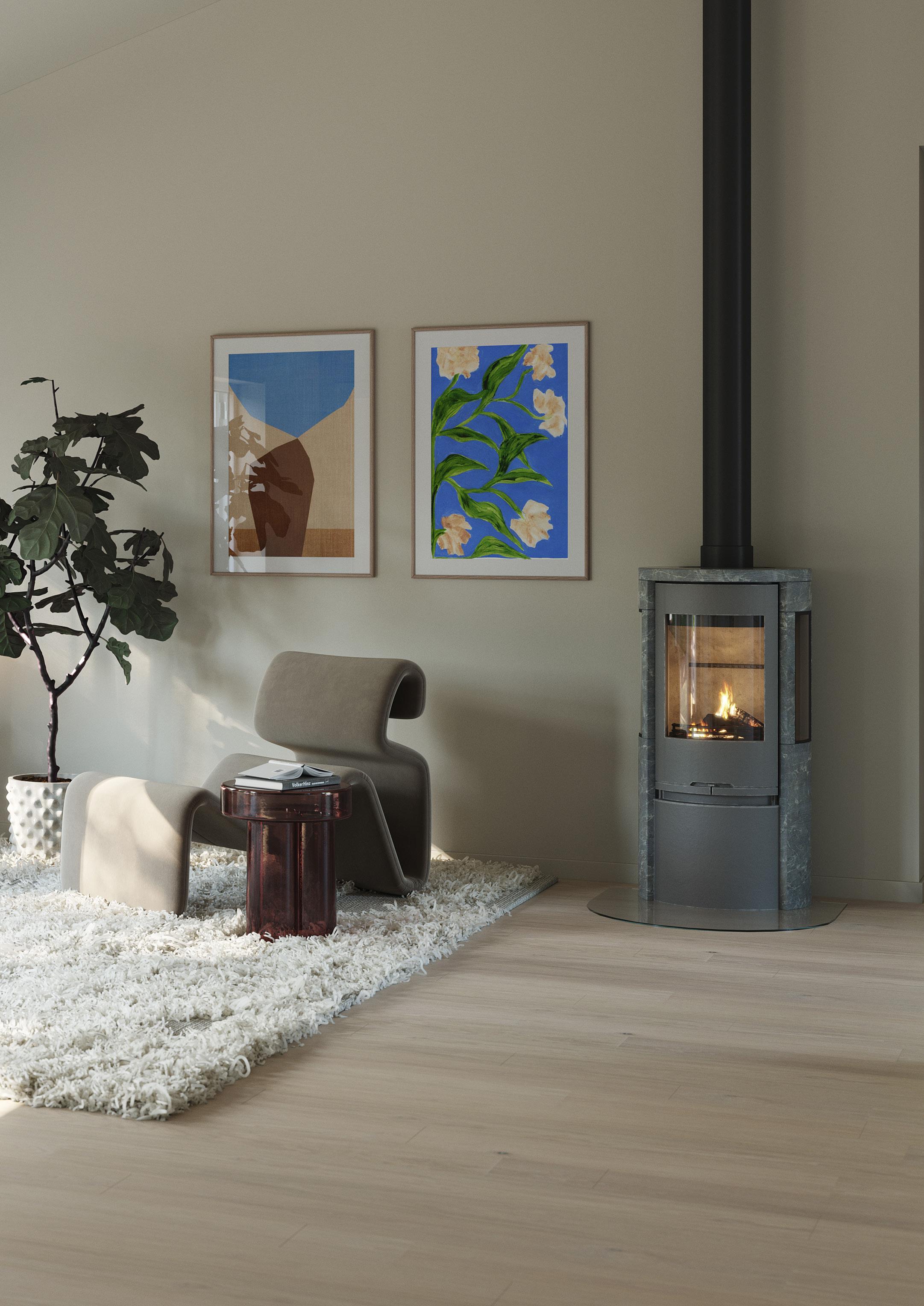 Att ha vattenburen golvvärme för uppvärmning är en investering som både är ekonomisk och energisnål. Eftersom golvvärmen täcker en stor yta, så kan rummen värmas upp med låg framledningstemperatur. Du kan alltså sänka temperaturen, uppleva en behaglig värme i rummen samtidigt som du spar energi. Det ger ett bättre inomhusklimat samt gör golvvärme optimalt tillsammans med värmepumpar. På övre plan ingår radiatorer.