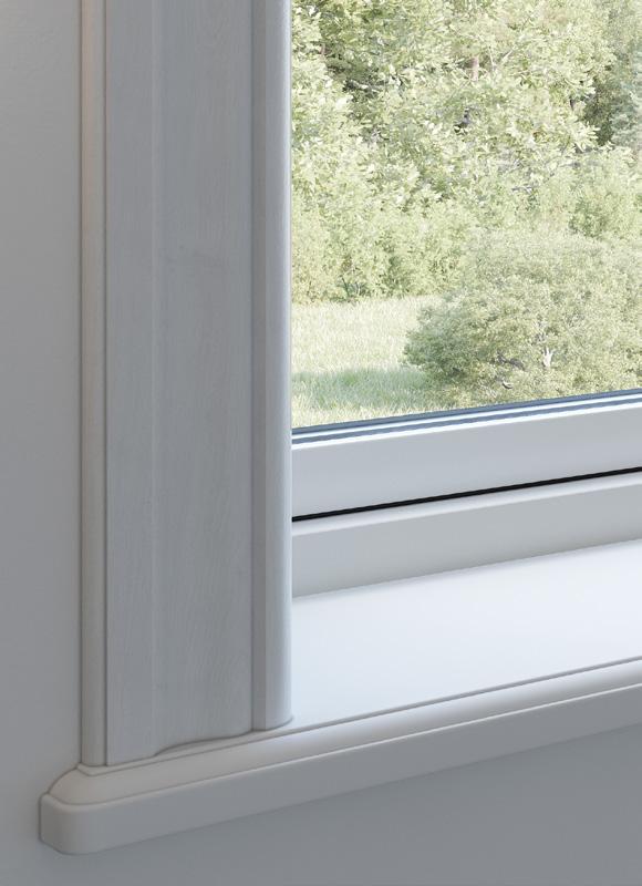 FÖNSTER MED VIT INSIDA. FÖNSTERSMYG OCH FÖNSTERBÄNK I VIT MDF.