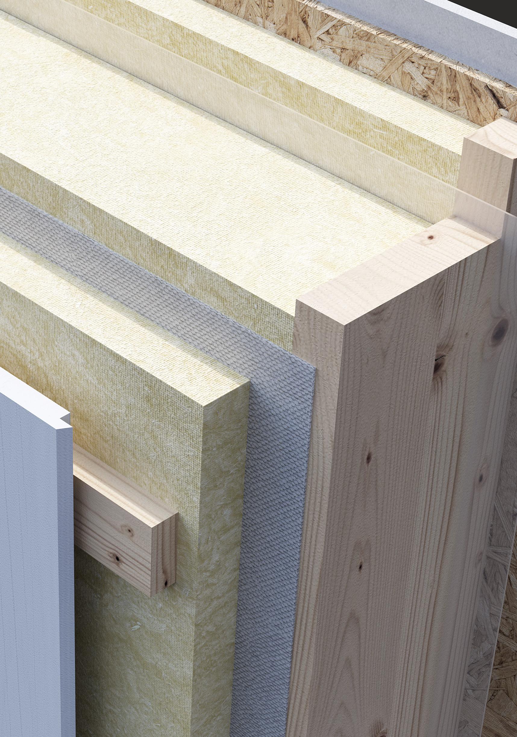 • Innanför fasadskivan monteras vår vindskyddande duk. Med denna placering ges bästa funktion och säker lufttätning.