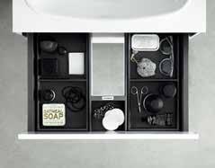 Tvättdel i badrum på övre plan med vit skåpinredning med släta luckor Aspekt och laminatbänkskiva från Marbodal, enligt ritning. Tvättmaskin och torktumlare från Siemens.