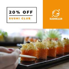 Bar 15% y 10% off. Sushi Club 20% off.