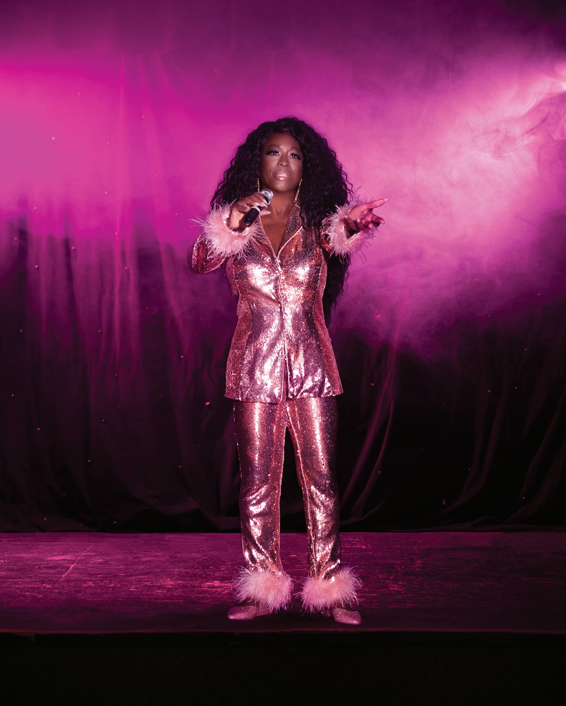 jewel of bars in P’town,” Pierre says. While working as a cocktail waiter, he noticed the bar was empty after Tea Dance, so he approached the owner with the idea of doing live “Dating Game” and “Newlywed Game” shows. Those were successful, which buoyed his confidence and unknowingly laid the foundation for the type of drag queen Patty Cakes is — a host, emcee, and storyteller. “I cannot lip sync!” Pierre laughs. “What I do is take Patrick’s personality and identity and put them through this prism to shine them into the world.”