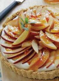 Carefully spoon filling into crust and spread to edge. Place peaches, overlapping slightly, in circular pattern over filling. Cover lightly with plastic wrap; refrigerate for 1 to 2 hours.