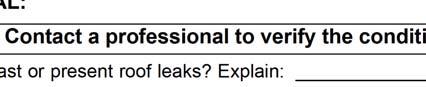 Por lo general, el Comprador ordena una inspección estándar de la casa después de que se acepta una oferta y es una examen visual de la estructura física y los principales sistemas interiores. No debe interpretarse como un garantía de cualquier tipo o póliza de seguro sobre el estado de la propiedad. Una inspección de la casa es no debe confundirse con una tasación, una inspección del código de construcción o una garantía de cualquier tipo y / o una póliza de seguro en la propiedad.