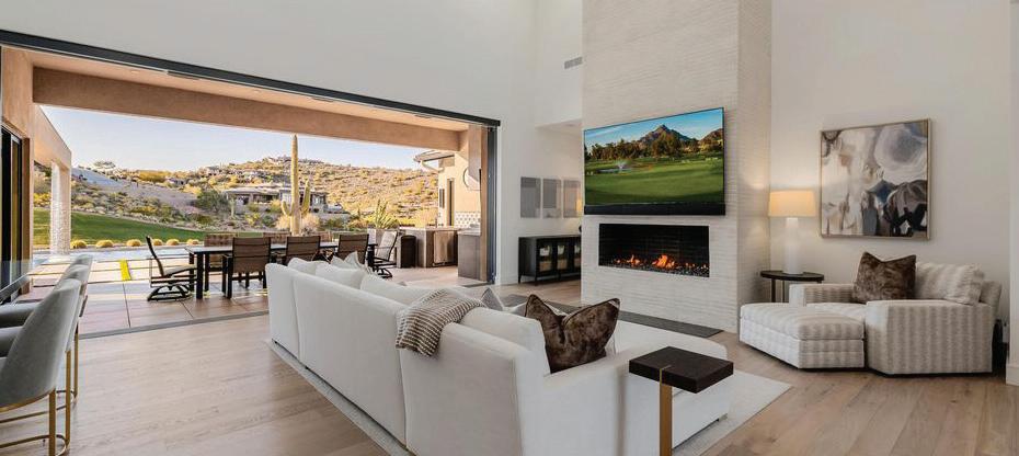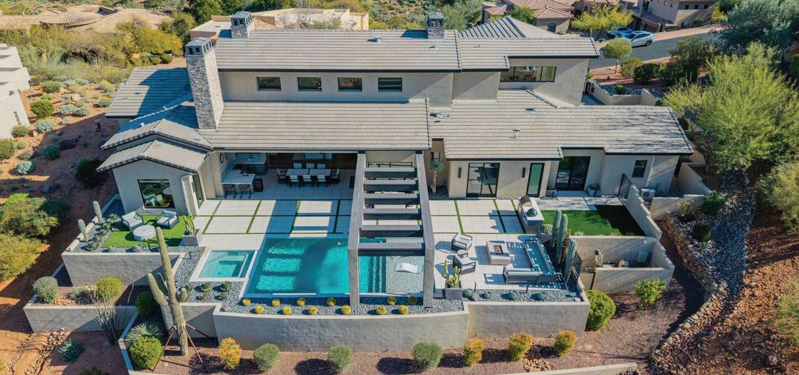 Rare opportunity to purchase this stunning 2021 Mark Candelaria designed custom home at Firerock Country Club. The home has an open floor plan with a panoramic view over the 18th hole with mountain & sunset views. A split floor plan with all of the bedrooms and main living areas on the first floor with no interior steps. The upstairs retreat has a bar & entertainment/game area and a spacious Trackman golf simulator bay. The outdoor entertainment area has a generous covered patio with built-in heaters, a great outdoor kitchen setup with multiple cooking options and a kegerator that overlooks the resort style pool with a magnificent water feature. Very high end finishes from top to bottom with Wolf & Subzero appliance package, Savant smart home technology , private gate and so much more!