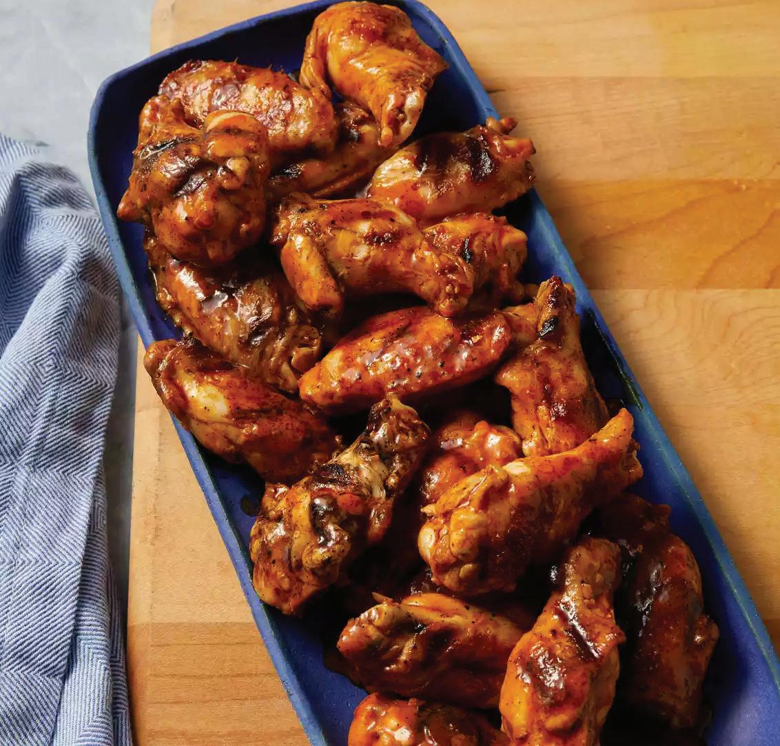 2. Grill wings over medium-high heat until golden and cooked through, about 25–30 minutes