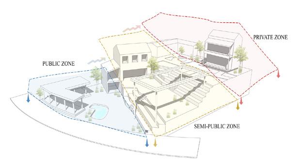 sloped connections to create a seamless transition between semi-indoor, indoor, and outdoor