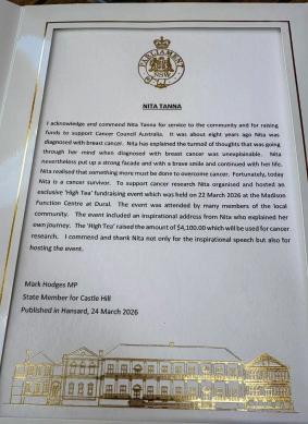 Global Fundraiser for Mission Shakthi SAT Launched in Hornsby by Minister James Wallace MP