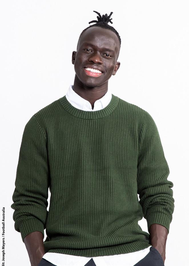 Awer grew up in a Kenyan refugee camp after his family fled civil war in Sudan, before coming to Australia at 10. Only a year after reaching his dream to play for the Socceroos, his sister died in a car accident in 2019. It is his experience of hard times, the memory of his sister and the knowledge that young people see him as a role model that drives him to perform. It’s what he does that 27-year-old Awer wants to be known for, not his background. Awer was unable to attend the awards presentation in Canberra due to team commitments in Europe. His mother Agot Dau Atem and uncle Michael Matiop Dau Atem