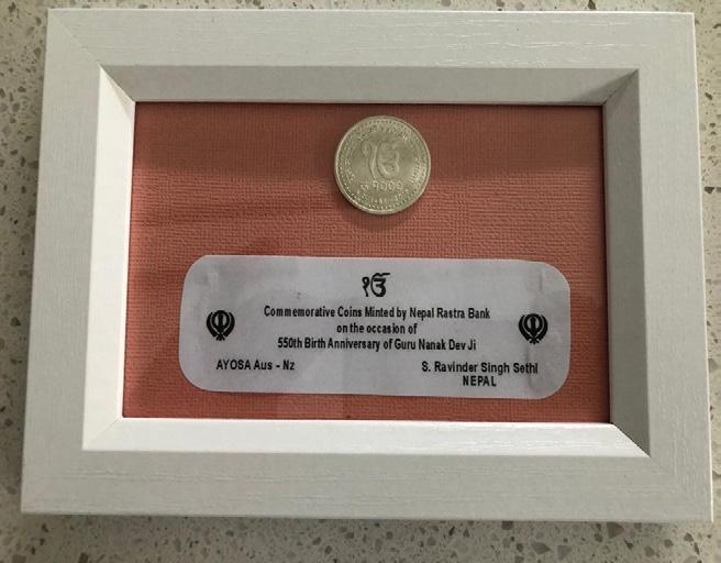 AYOSA donated a coin of Nepali Rupees 1000 on Sri Guru Nanak Sahib ji to ASA