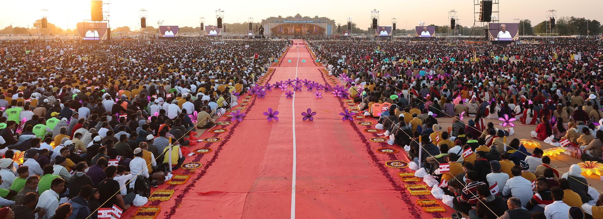 In the month-long festival, over 12.1 million people visited the exhibitions and attractions at Pramukh Swami Maharaj Nagar and were inspired to live better lives. The Nagar hosted a variety of exhibitions, attractions, seminars, films and shows, each imparting a unique lesson from the inspiring life of Pramukh Swami Maharaj. Millions watched the evening assemblies held every day for the past month live, whether at the Nagar or over webcast, and learned about Pramukh Swami Maharaj’s life and work from speeches given by senior swamis and dignitaries from around the world. Thousands gained inspiration from Pramukh Swami