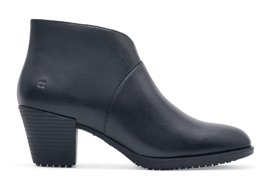 Slip resistant. Water resistant. Slim-fitting design ideal for narrow feet. TripGuard. Water resistant leather upper. 1 ½“ heel height. Removable insole. INFUSE™ EVA midsole. Weight (per shoe): 9.31 oz. 117444 (35) Black