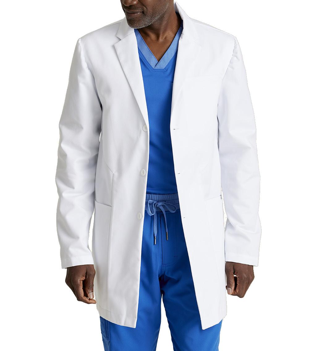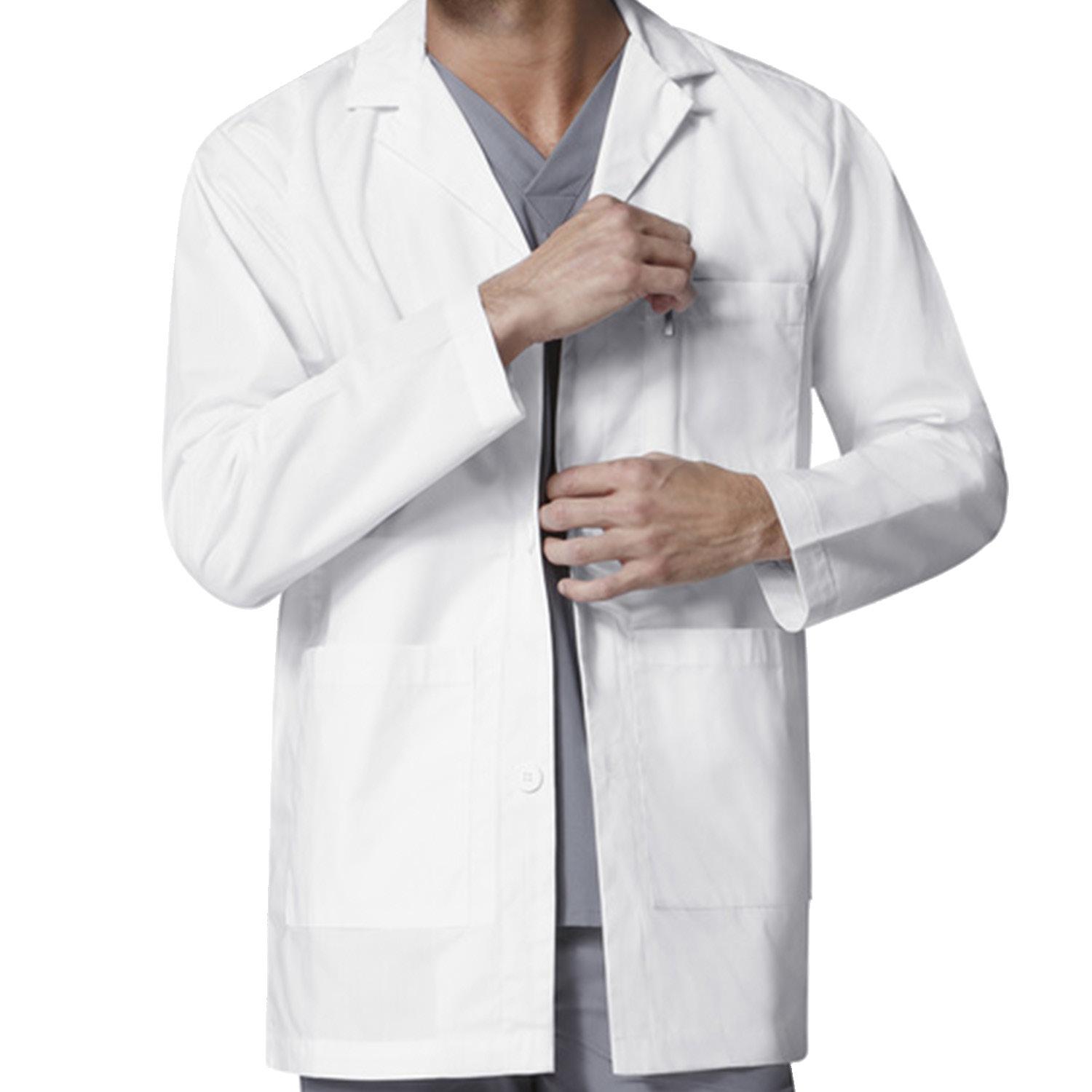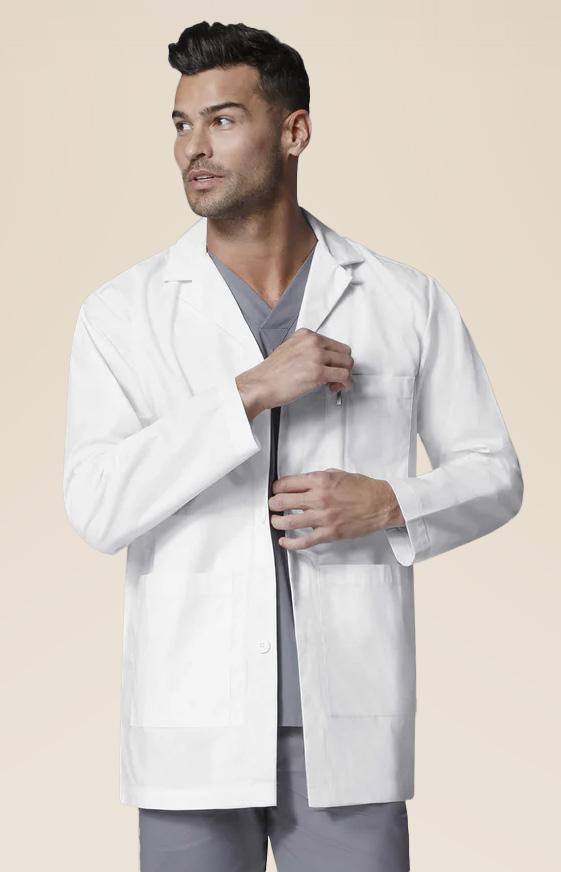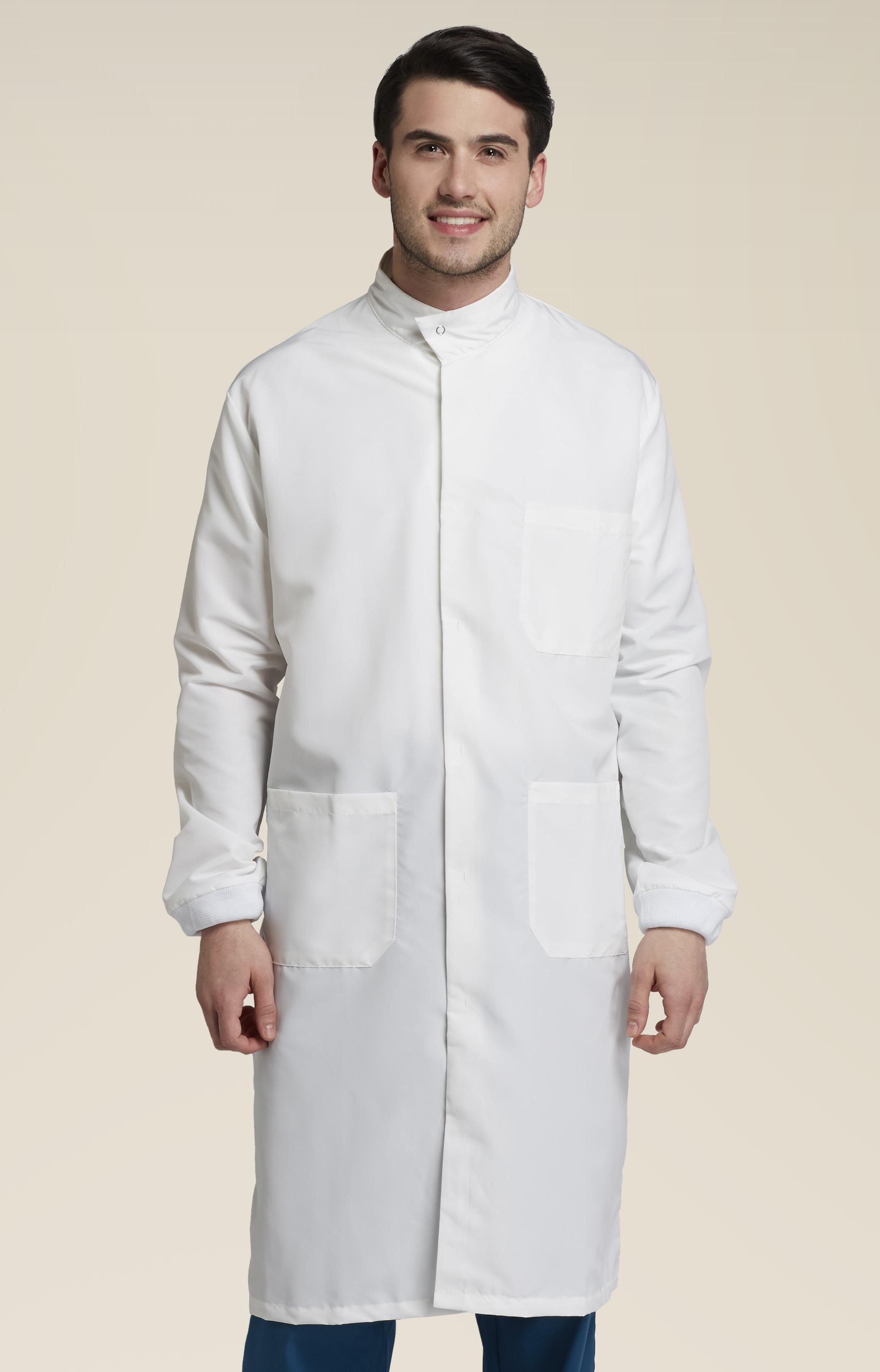 A longer lab coat provides additional protection and coverage with a classic, mid-thigh or above the knee cut.