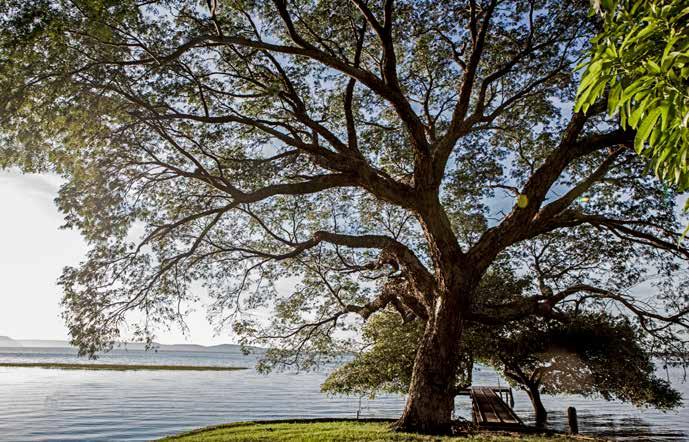 Ao longo das curvas em diferentes trechos, se avistam orlas rochosas, canforeiras, bordos e