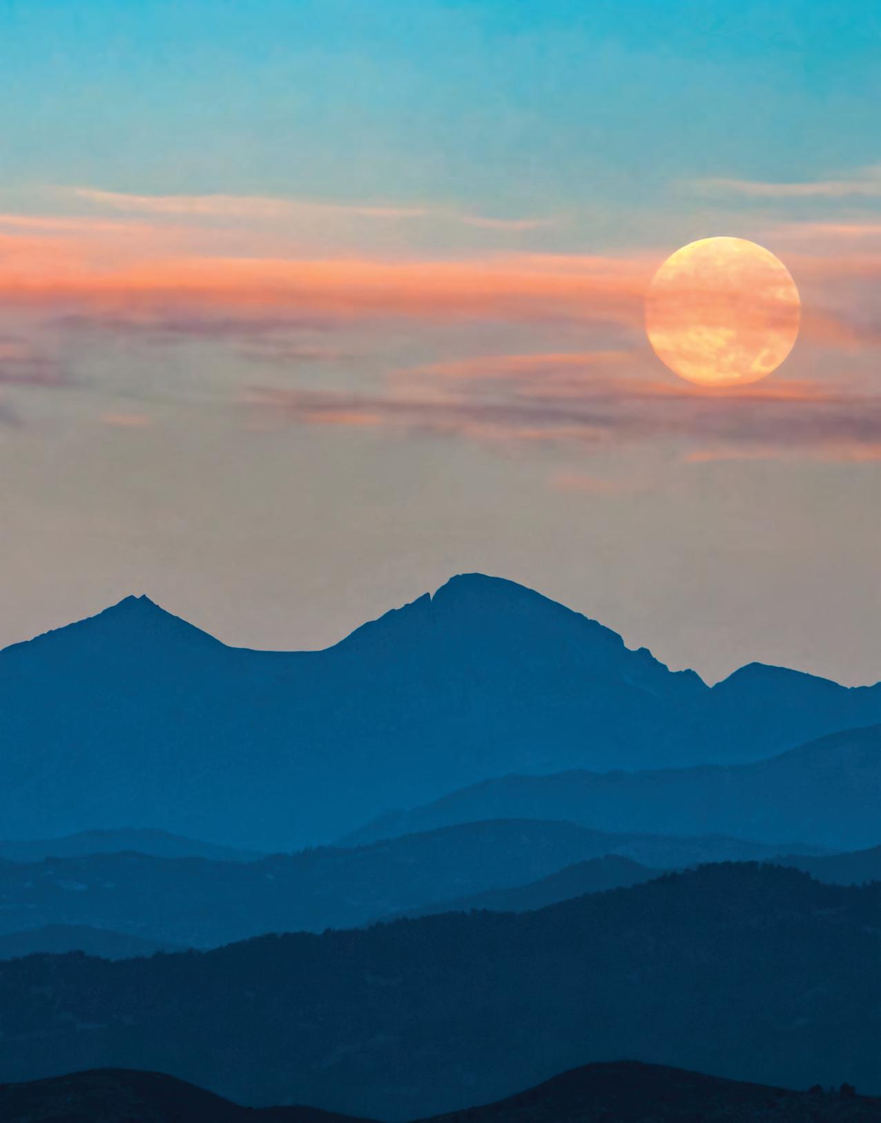 FULL MOONS HAVE captured the imagination of ancient stargazers and modern photographers alike. Each lunar phase has its own charm – the slender crescent, the D-shaped quarter, the nearly full gibbous – but nothing matches the spectacle of a full moon. Here in Colorado, where high-altitude air sharpens the light and the horizon runs to distant peaks, the view feels especially vivid.