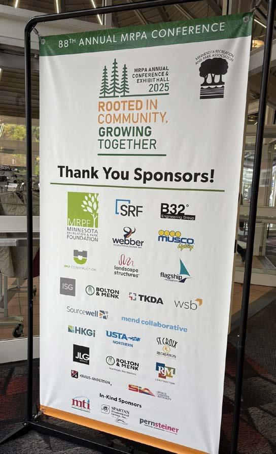 The 2025 MRPA Conference was a tremendous success, welcoming a recordbreaking 500 delegates and featuring a sold-out exhibit hall. That’s right—we officially ran out of chairs and vendor swag. Thank you to everyone who planned, attended, presented, and connected in Brooklyn Center. We’re excited to return to Duluth in 2026, so be sure to mark your calendars for October 20–23. Start preparing now—Duluth in October means you can pack a winter coat, sunglasses, and an umbrella and use all of them in the same afternoon.
