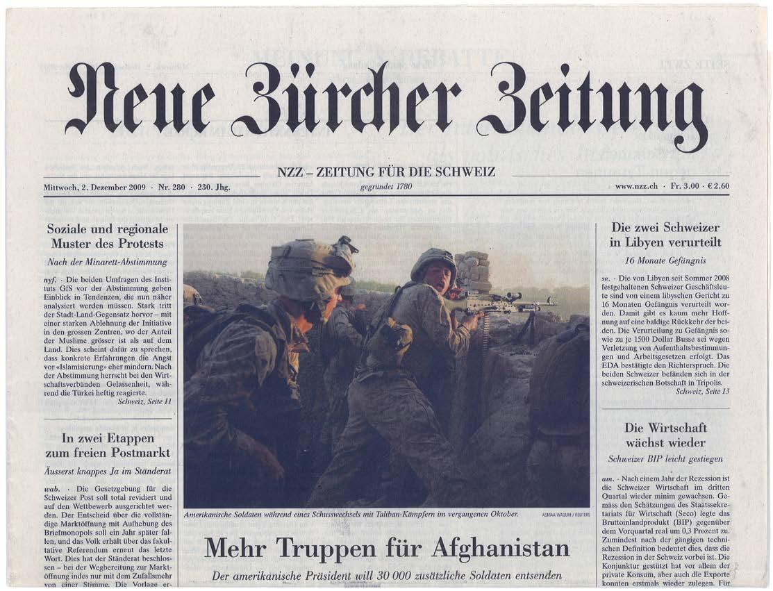× 35 cm (4 parts) [Bottom left] Redesign of Neue Züricher Zeitung, 2009