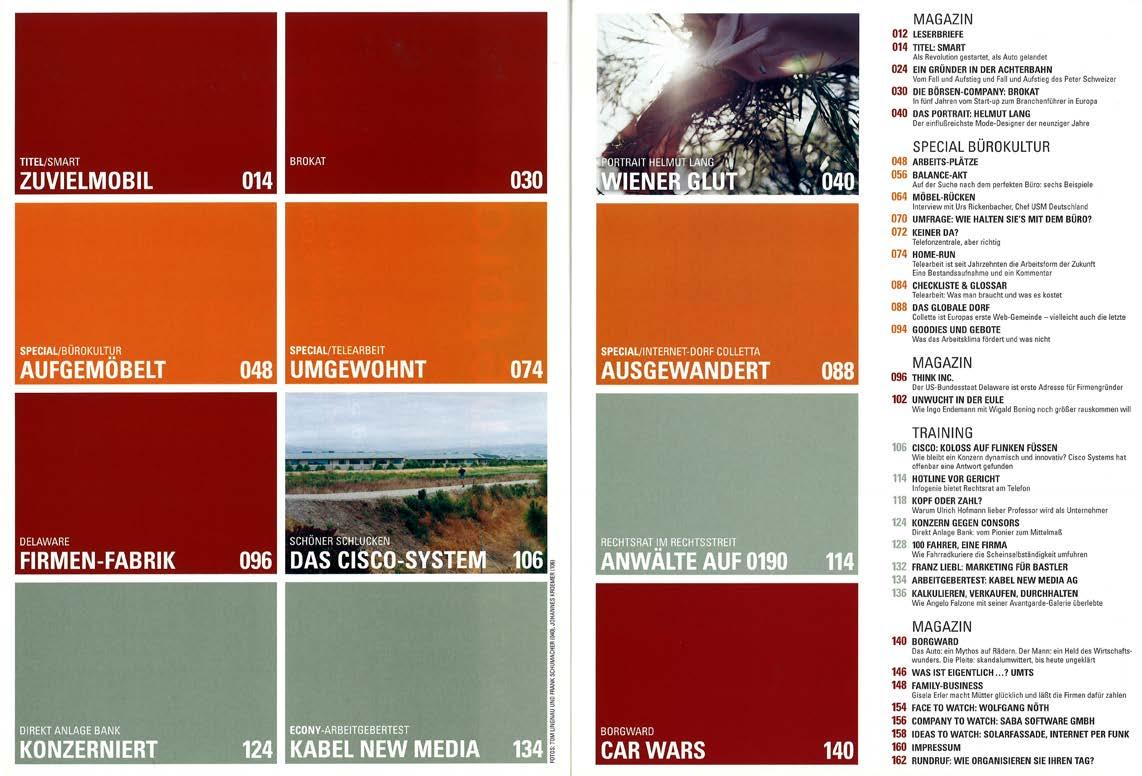 [Bottom] Excerpt (table of contents) from the Magazine ECONY, 1998 – 2001