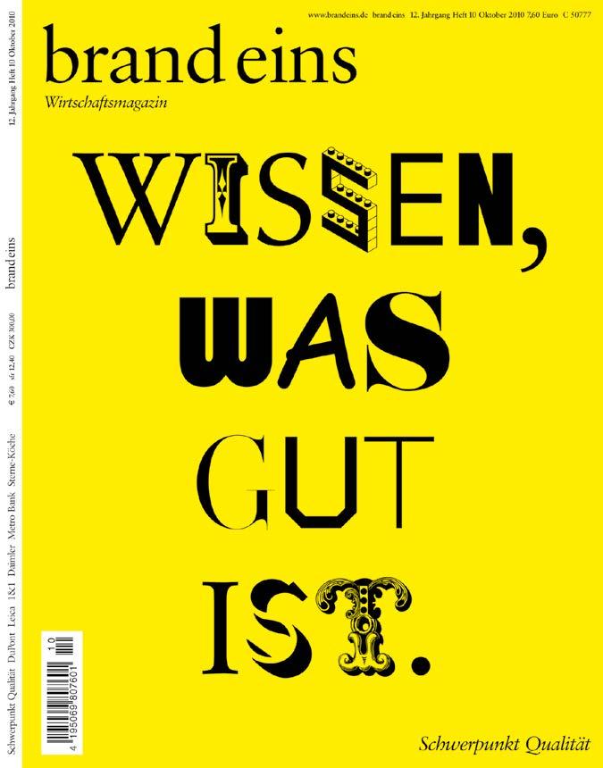 For example, brand eins the business magazine, which was founded in 1999 by Gabriele Fischer. I was there as well, so we have been working together for more than 25 years. It became a well known brand because we were able to understand there was a new economy coming.