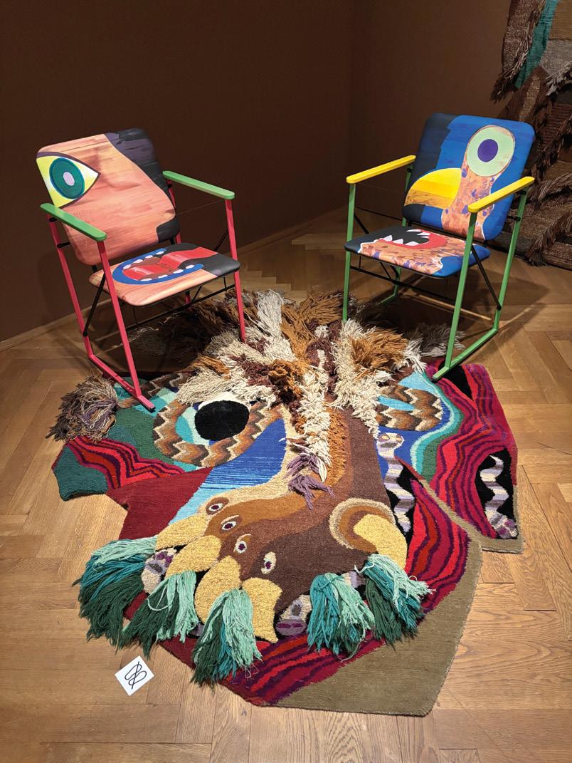 Chairs: Human talking, Animal not understanding a word, 2024 Screenprinted by hand on Yrjo Kukkapuro Chairs