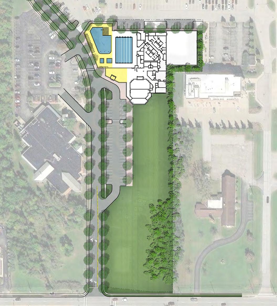 2.00 Option 2: Natatorium Expansion & Update. Add a second pool area that includes a zero entry pool with a slide and fountains, a seating area, a hot tub, and a therapy pool. Pending