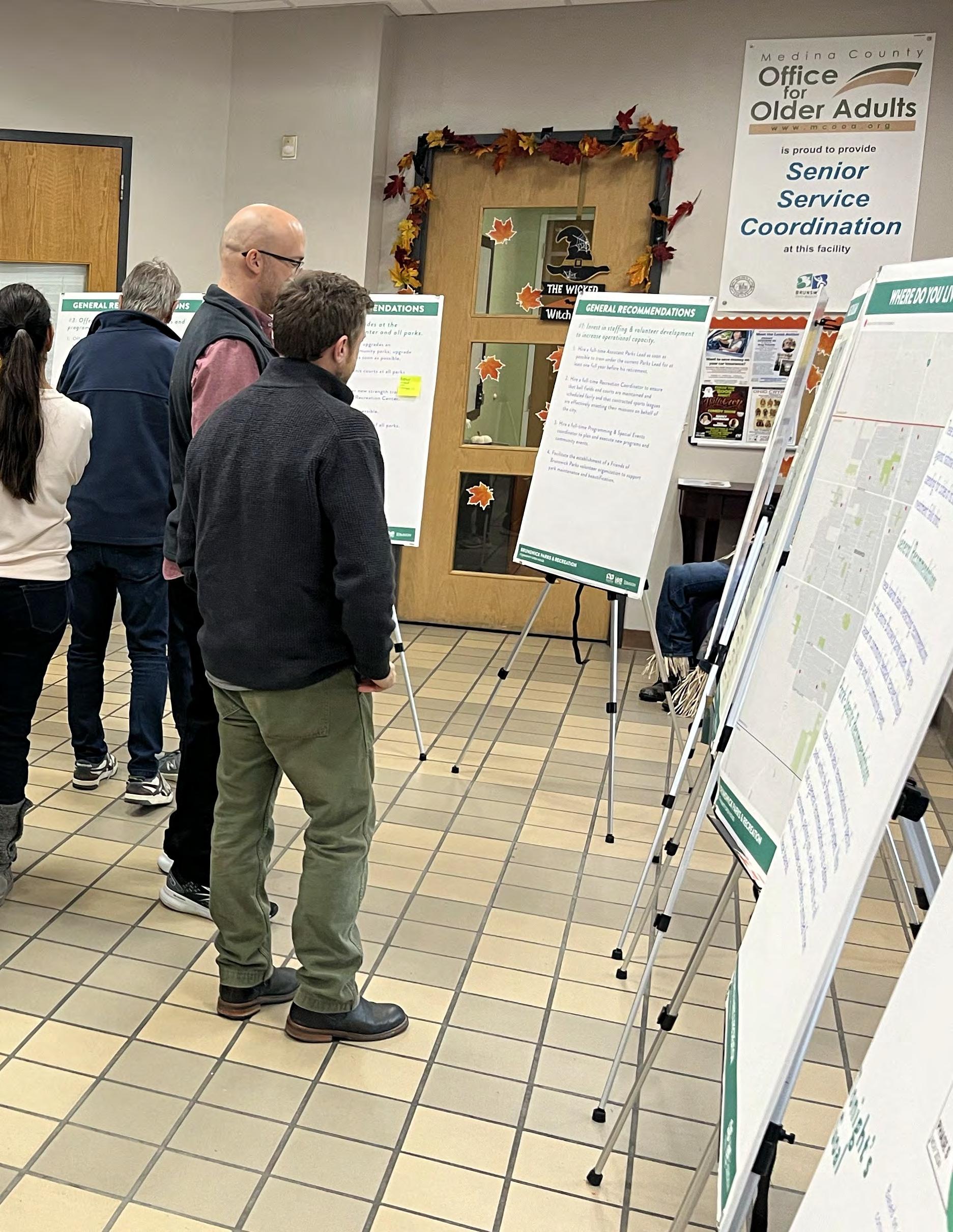 The consultant team mobilized in June 2024 with introductory meetings with City of Brunswick staff, a tour of Brunswick's parks and Community Recreation Center, and a review of discovery materials provided by city staff. Through July and August, the consultant team held 30–60-minute one-on-one conversations with 15 community stakeholders via Zoom (an additional 2 interviews were held in November), and an online survey was promoted to community members. On July 29, residents were invited to an Open House–style engagement event at the Community Recreation Center, where more than 90 attendees participated in a mapping exercise and indicated their preference for various amenities using sticker dots, gold "coins," and handwritten notes. During the fall of 2024, a Certified Park and Recreation Executive (CPRE) benchmarked Brunswick's supply of parks and recreation services and amenities against communities nationwide that are similar in size and in the number of parks they maintain. The survey closed with 1,382 responses (i.e., from approximately 4% of the total community). And on October 16, community members were invited to a second Open House event, this time to react to draft recommendations; more than 55 people attended. The consultant team then prioritized its recommended capital expenditures and identified potential funding sources to facilitate the implementation of each. The final plan and its recommendations, which incorporated feedback from almost 1,500 community members, was formally adopted by Council in early 2025.