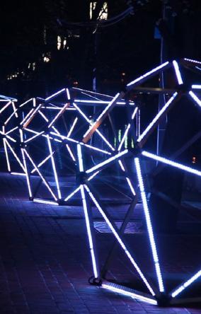 Contemporary artists use lighting in creative and interesting ways in order to manipulate the built environment with limited physical impacts. Light installations may be used on existing buildings, in parks on substantial landscape features, or as part of a larger installation of sculpture. They may be especially useful and impactful when used in infrastructure projects.