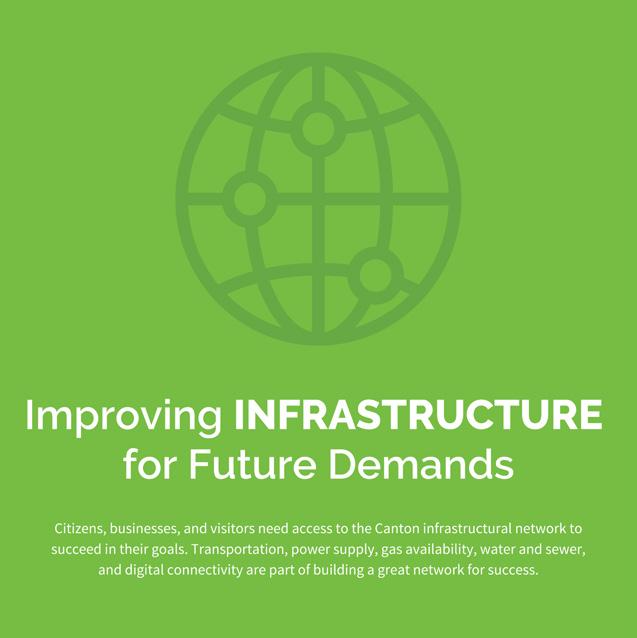 Citizens, businesses, and visitiors need access to the Canton infrastructural network to succeed in their goals. Transportation, power supply, gas availability, water and sewer, digital connectivity are part of building a great network for success.