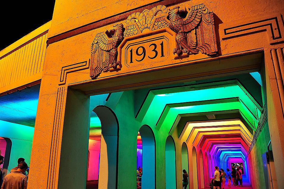Artists use lighting in creative and interesting ways in order to manipulate the built environment with limited physical impacts. Light installations may be used on existing buildings, in parks on substantial landscape features, or as part of a larger installation of sculpture. They may be especially useful and impactful when used in infrastructure projects. Projections could rotate at regular intervals (biennially, seasonally, etc.), and could present exciting opportunities for accompanying programming.