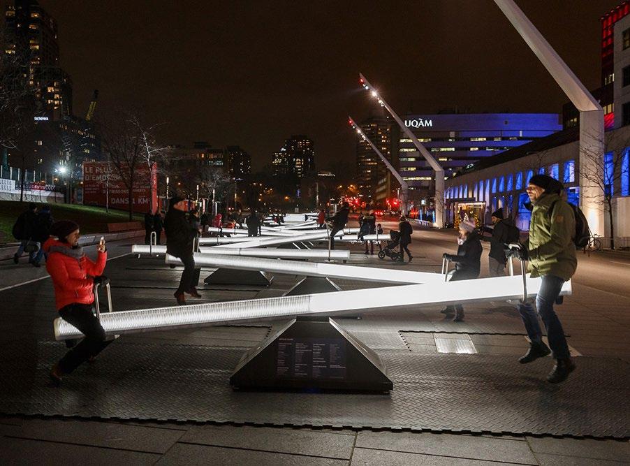 Artists use lighting in creative and interesting ways in order to manipulate the built environment with limited physical impacts. Light installations may be used on existing buildings, in parks on substantial landscape features, or as part of a larger installation of sculpture. They may be especially useful and impactful when used in infrastructure projects.