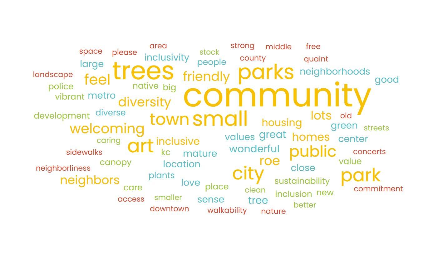 The Planning team spoke with 22 individuals in the City of Roeland Park, whose backgrounds and professional affiliations include City administration, the arts, non-profit organizations, City Council, and beyond. Each stakeholder was asked about their: