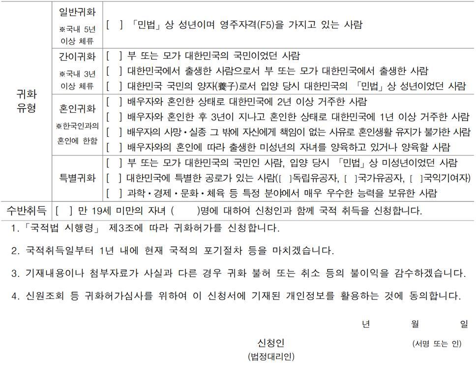 본인은 귀화허가 신청서 "작성방법 및 유의사항"을 읽고 모두 이해하였음을 확인합니다 본인은 귀화허가 신청서 "작성방법 및 유의사항"을 모두 이해하였음을 확인합니다 본인은 귀화허가 "작성방법 유의사항"을 모두 확인합니다 ※ 신청자 본인이 위 내용을 이 박스 안에 직접 자필로 쓰세요