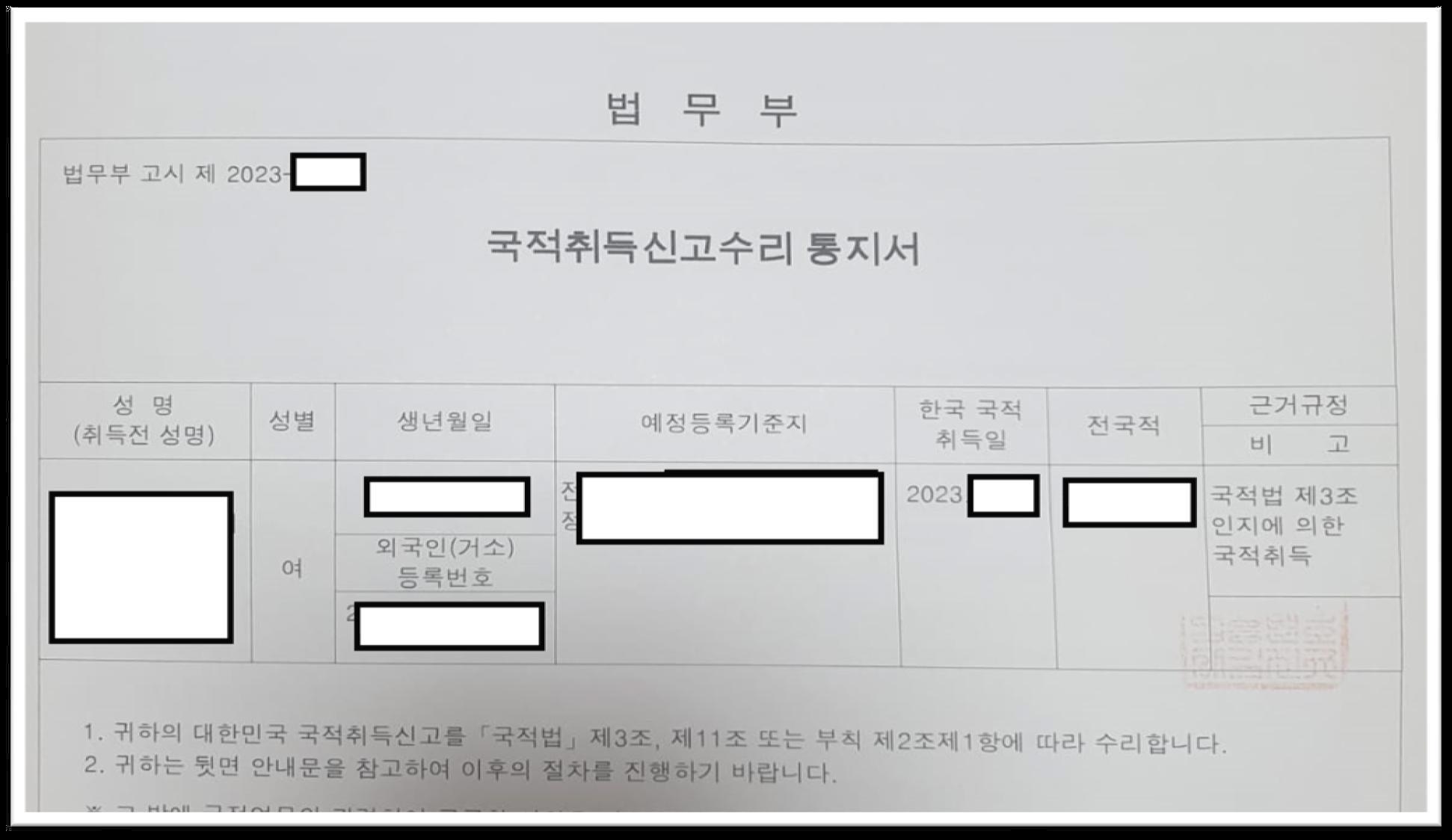 ‣ 귀화허가를 받은 사람은 법무부장관 앞에서 국민선서를 하고 국적증서를 수여받아야 대한민국 국적을 취득할 수 있습니다 반드시 국민선서의 내용을 확인하고 체크( √ )하시기 바랍니다