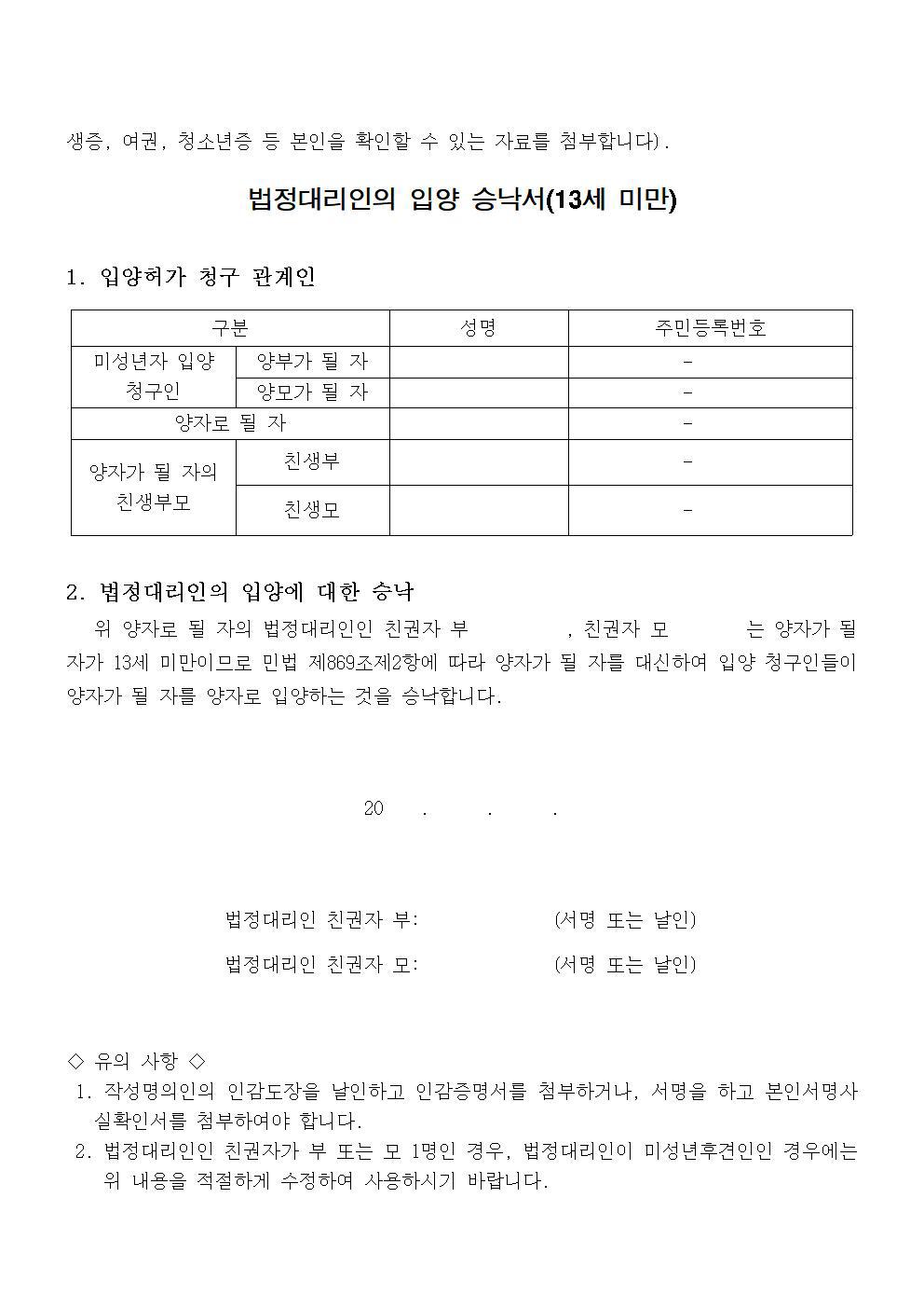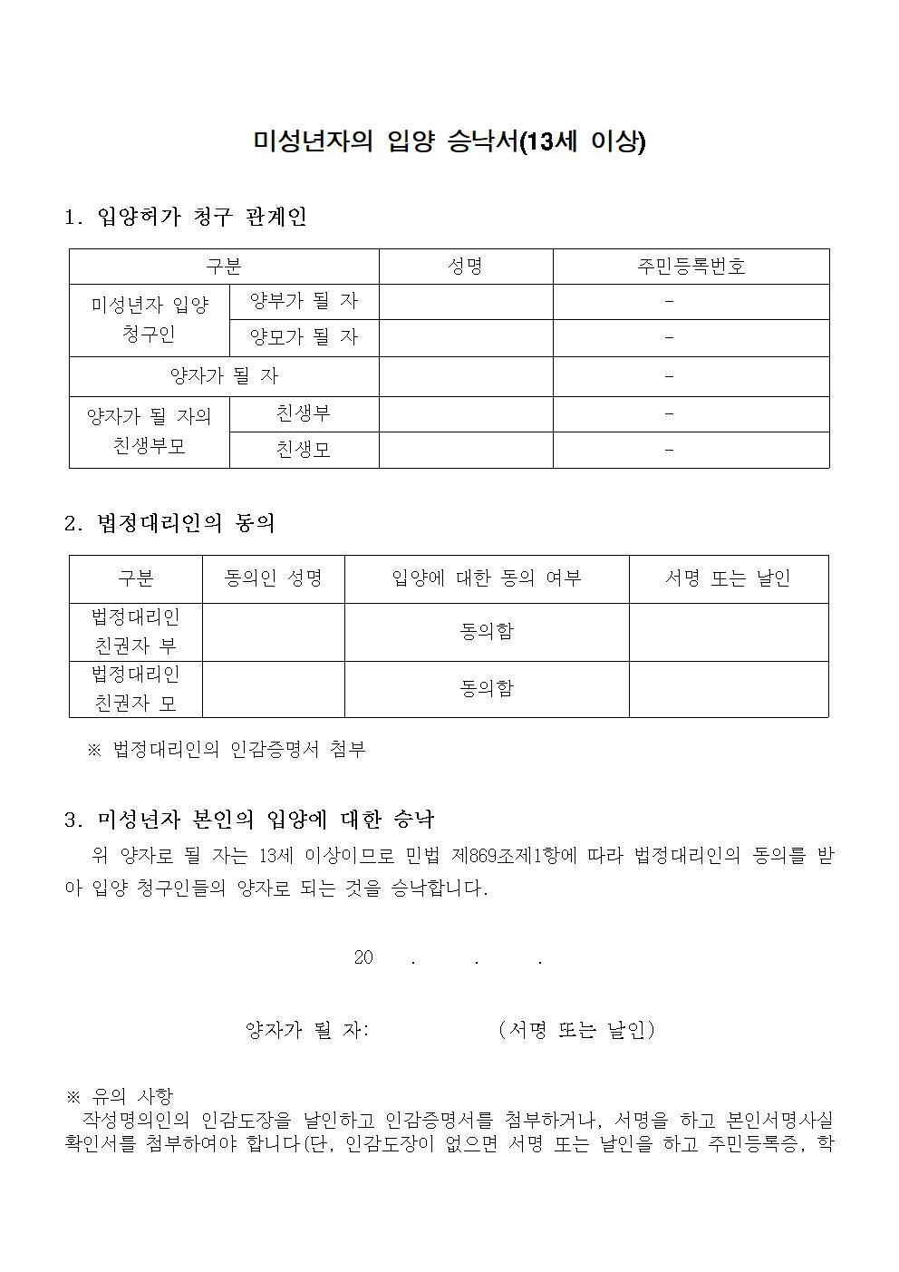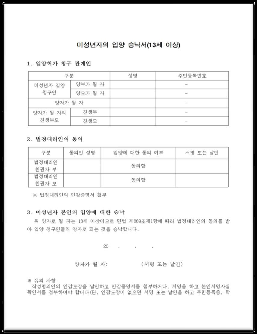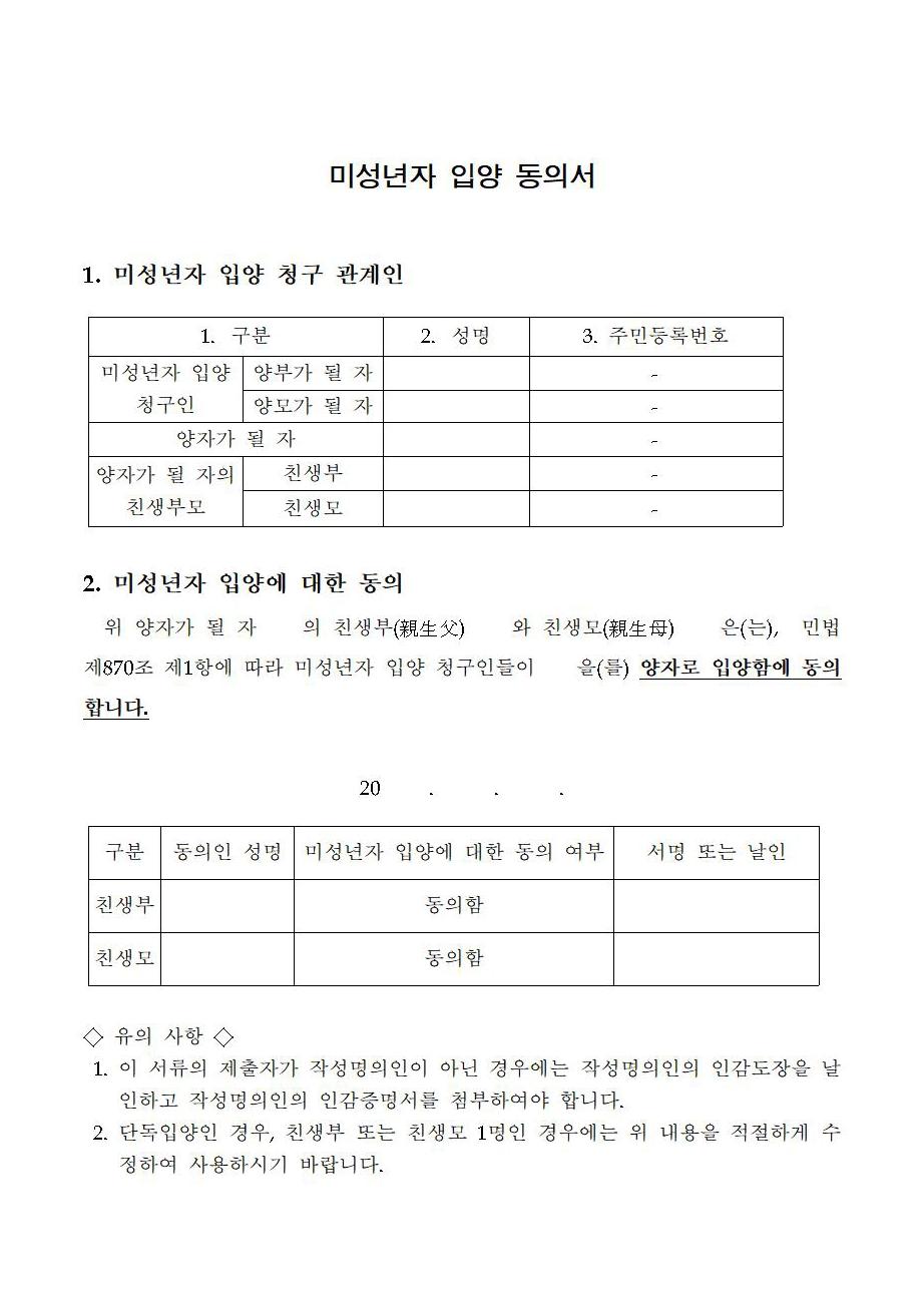 미성년자 입양동의서