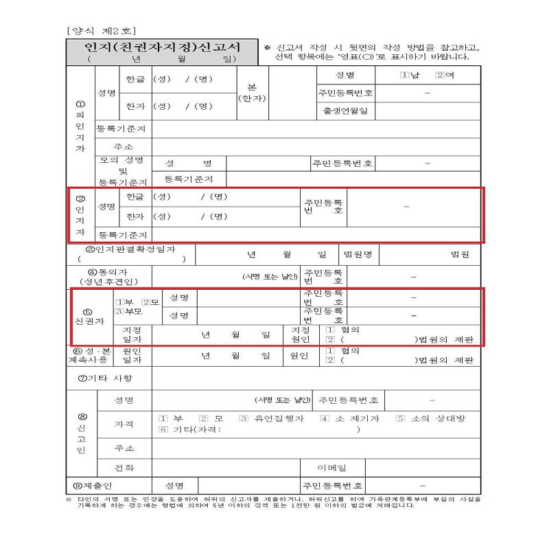 ‣ 자녀의 예정 등록기준지는 부 또는 모의 예정 등록기준지와 동일하게 기재합니다